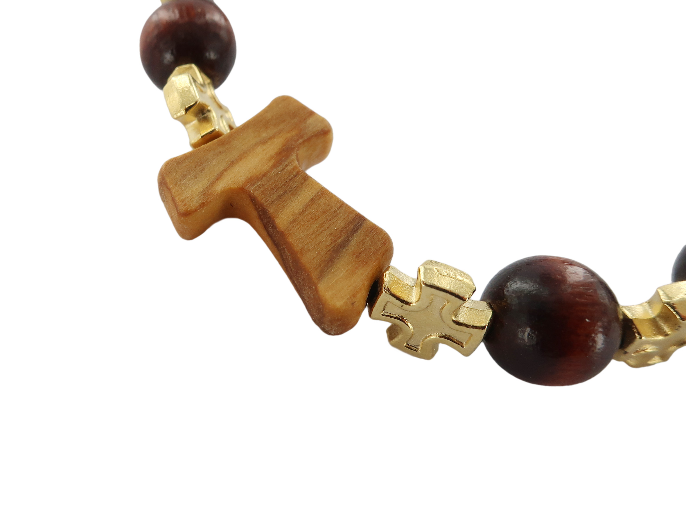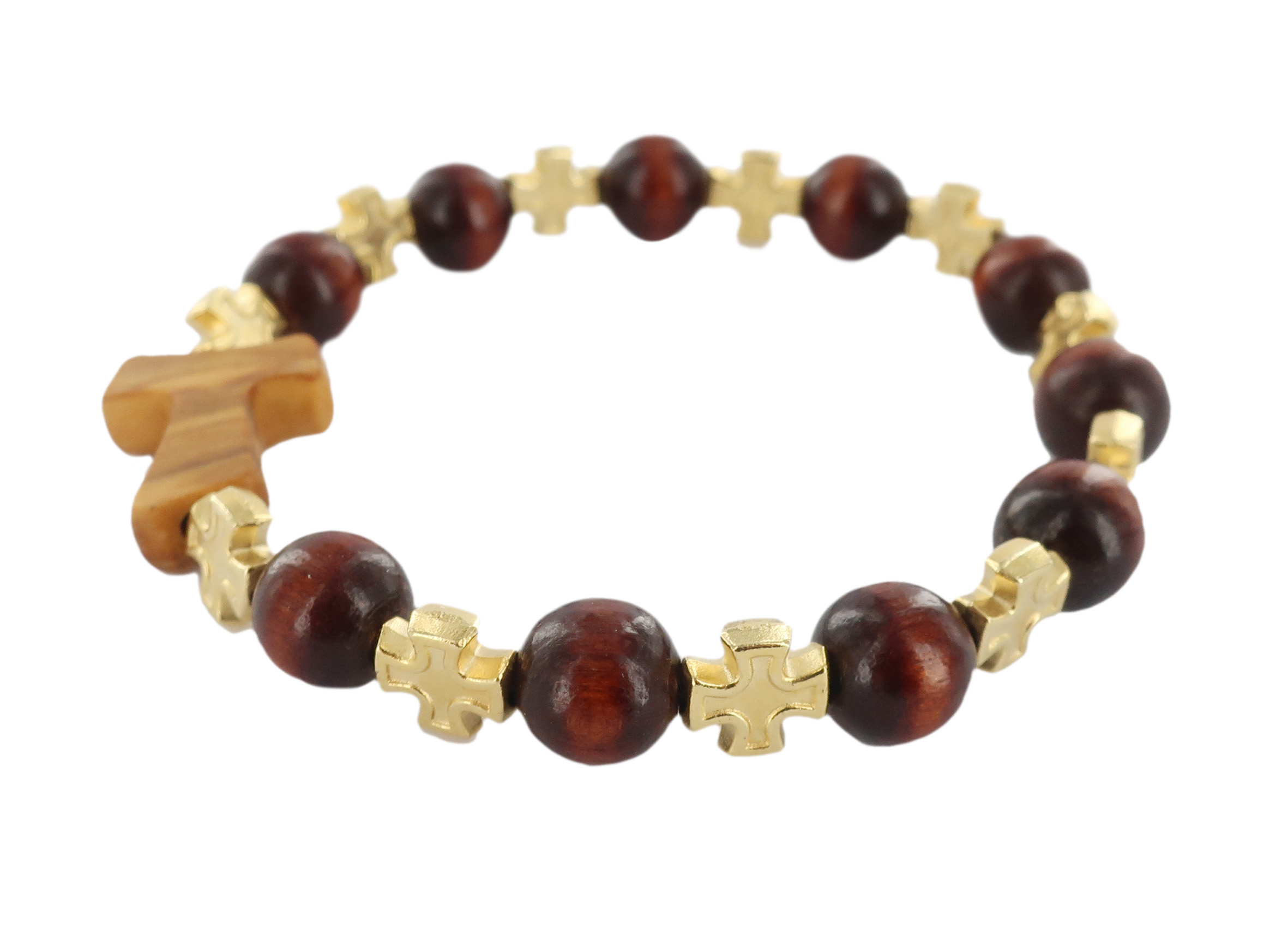Braccialetto elastico grani in legno color palissandro e croci in metallo