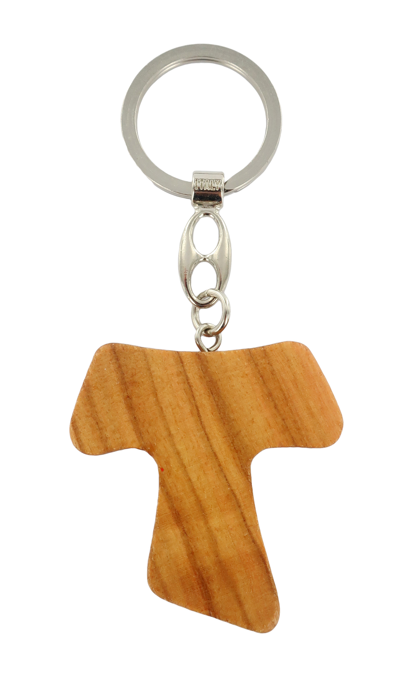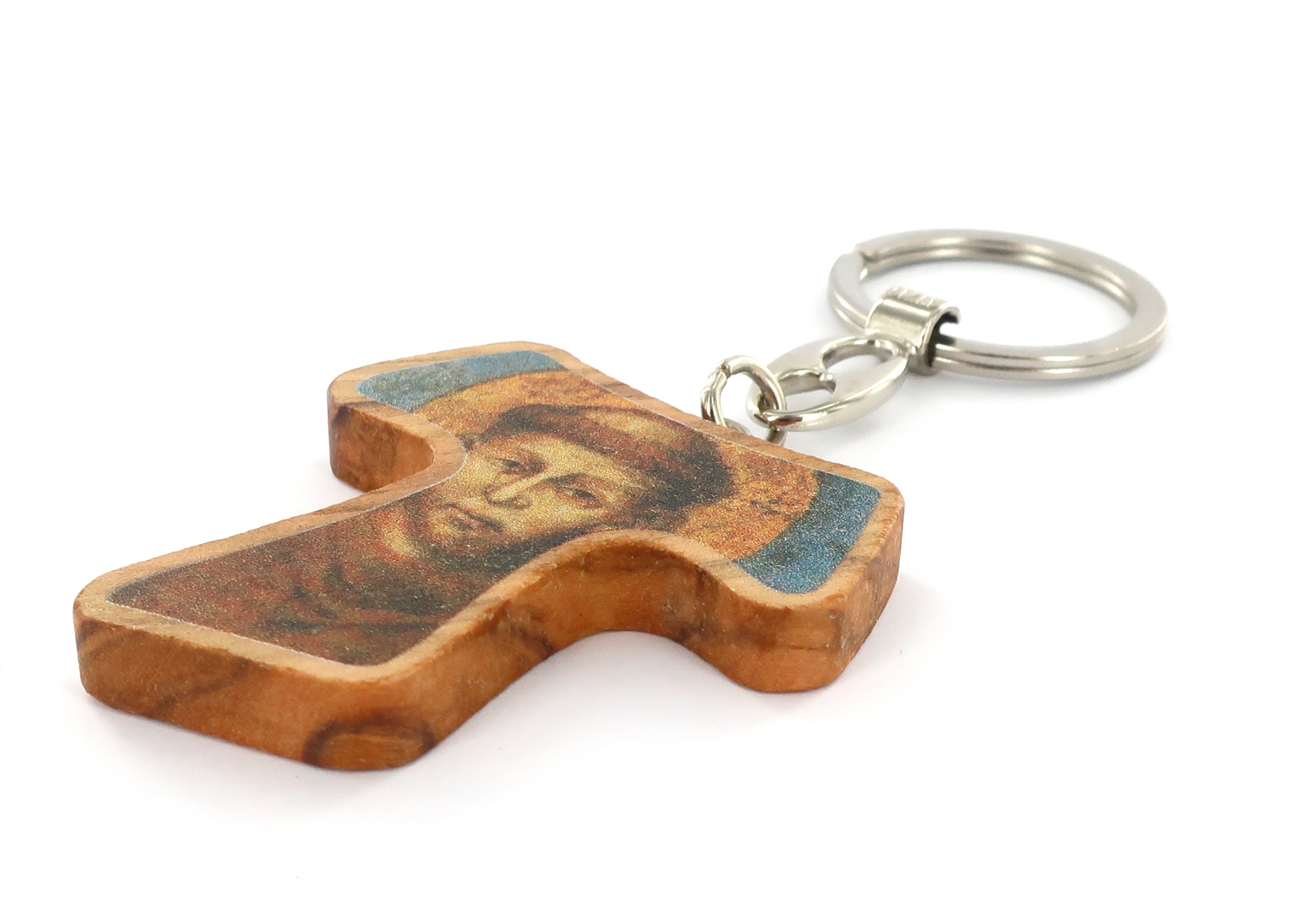 Portachiavi tau volto San Francesco in ulivo immagine serigrafata