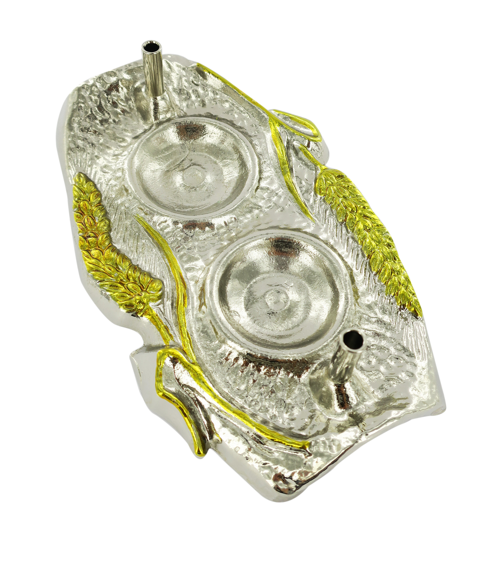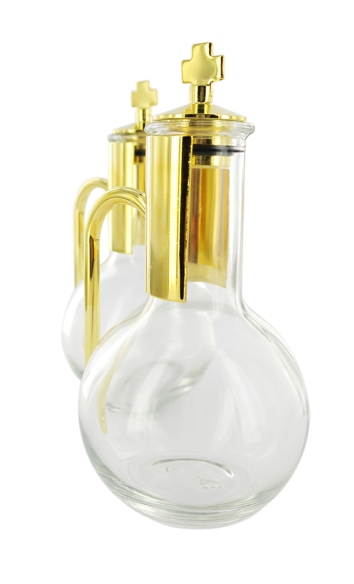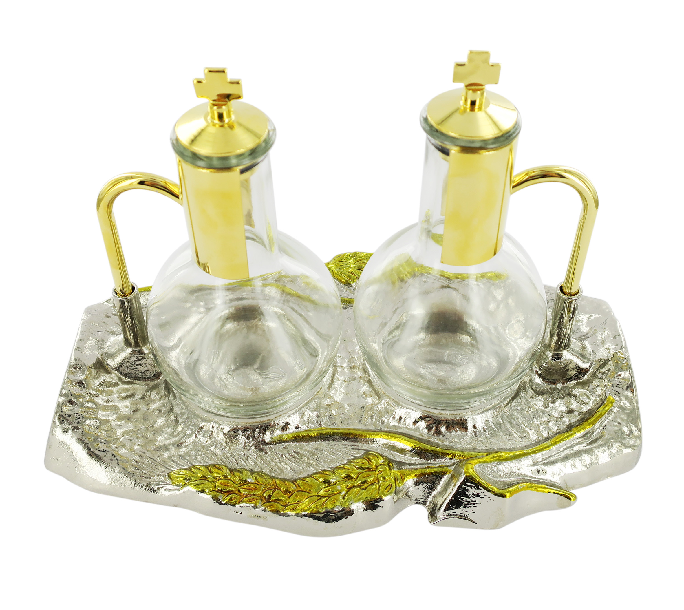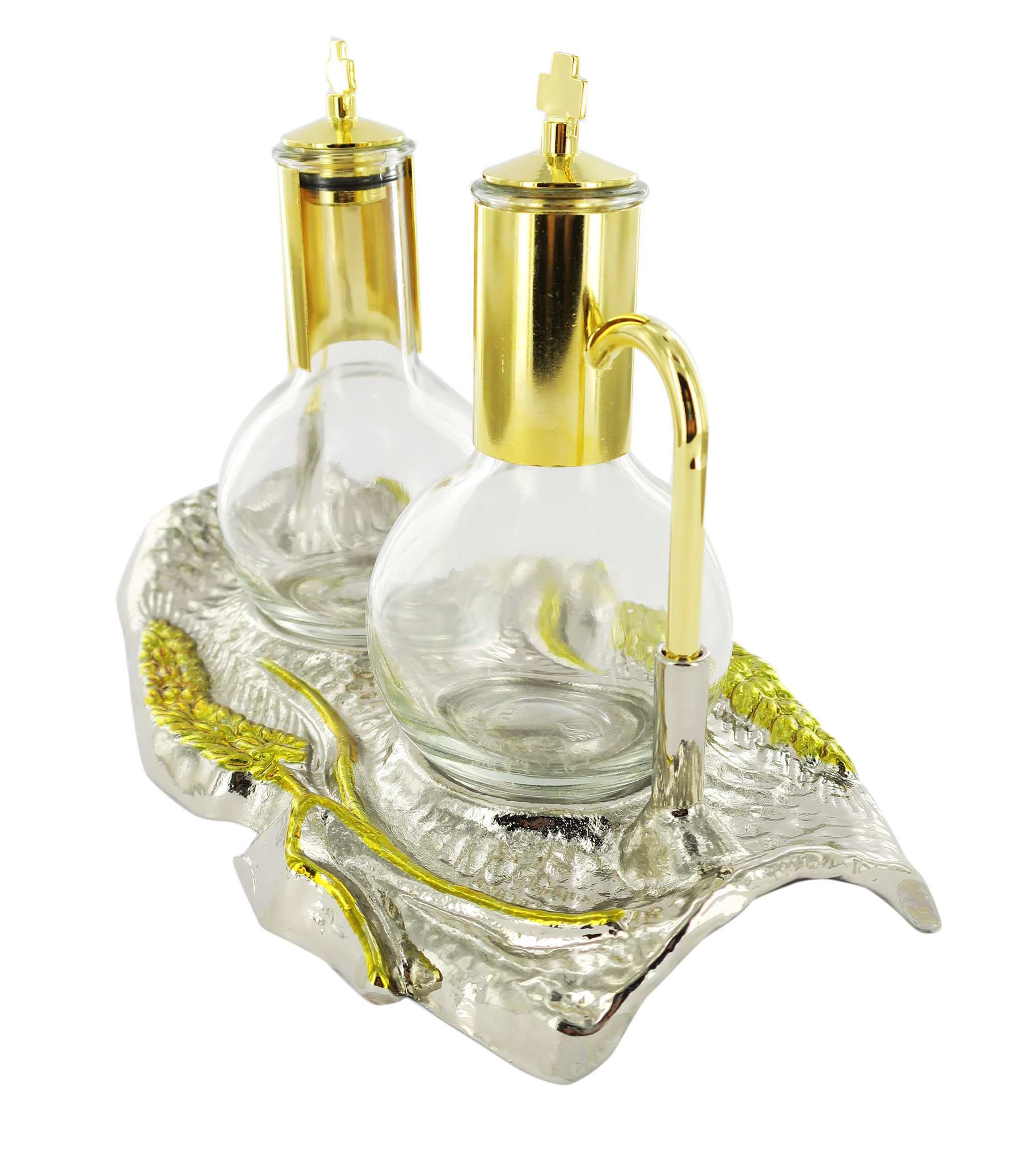 Ampolline da messa in vetro e ottone con vassoio in nikel modello Spiga, capienza 100ml.