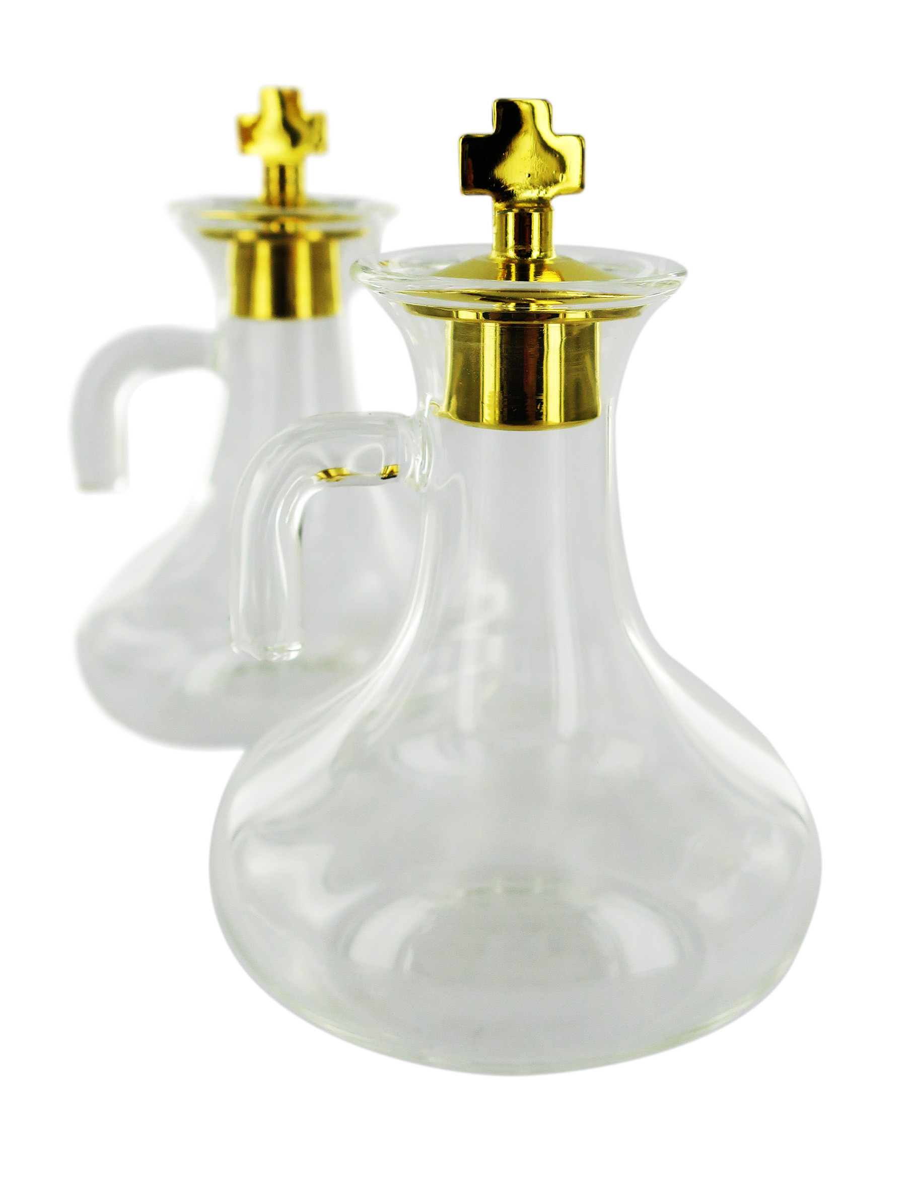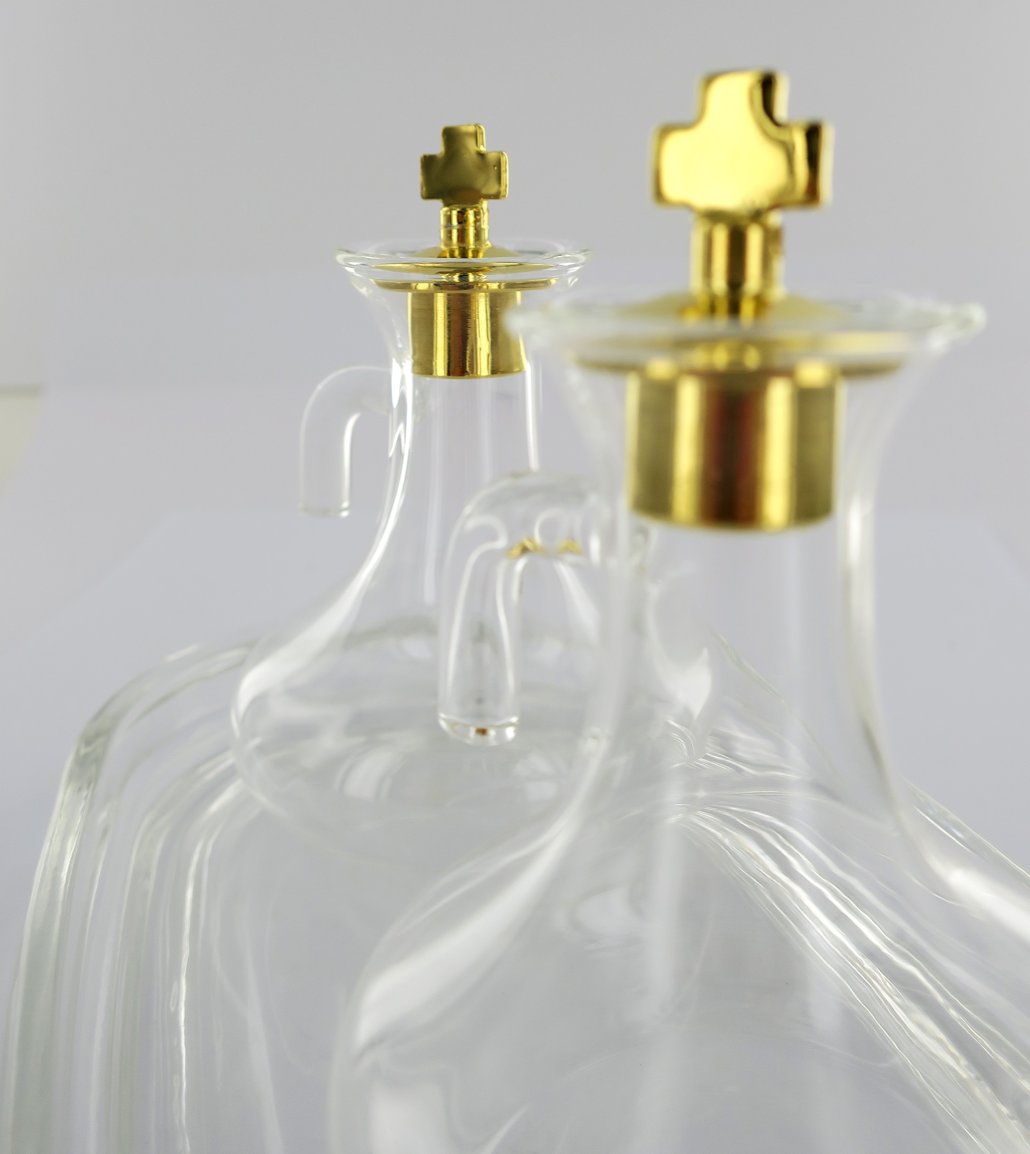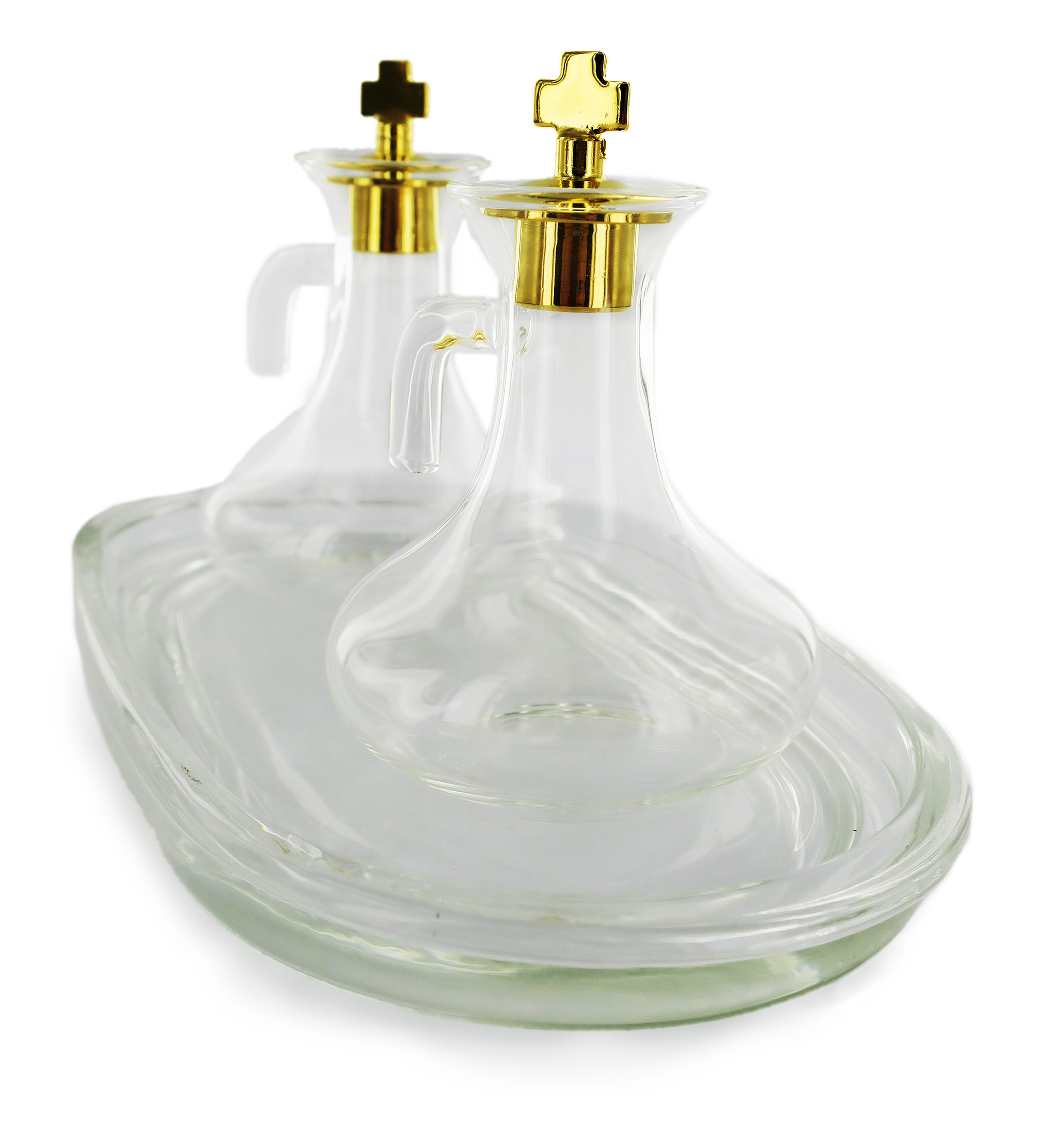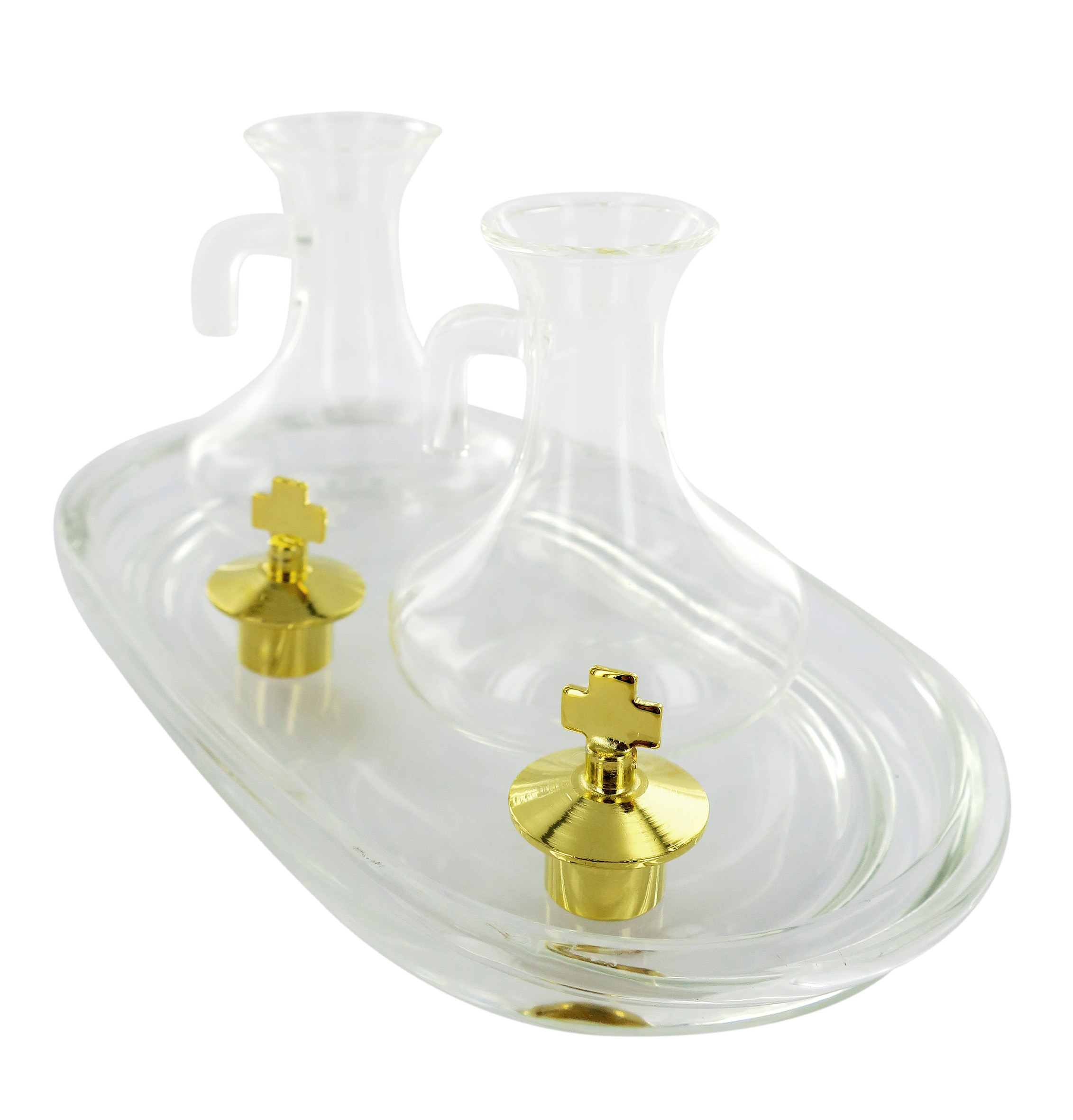 Set Ampolline Liturgiche e Vassoio per Messa, Vetro Trasparente e Ottone Color Oro, 50 Cc