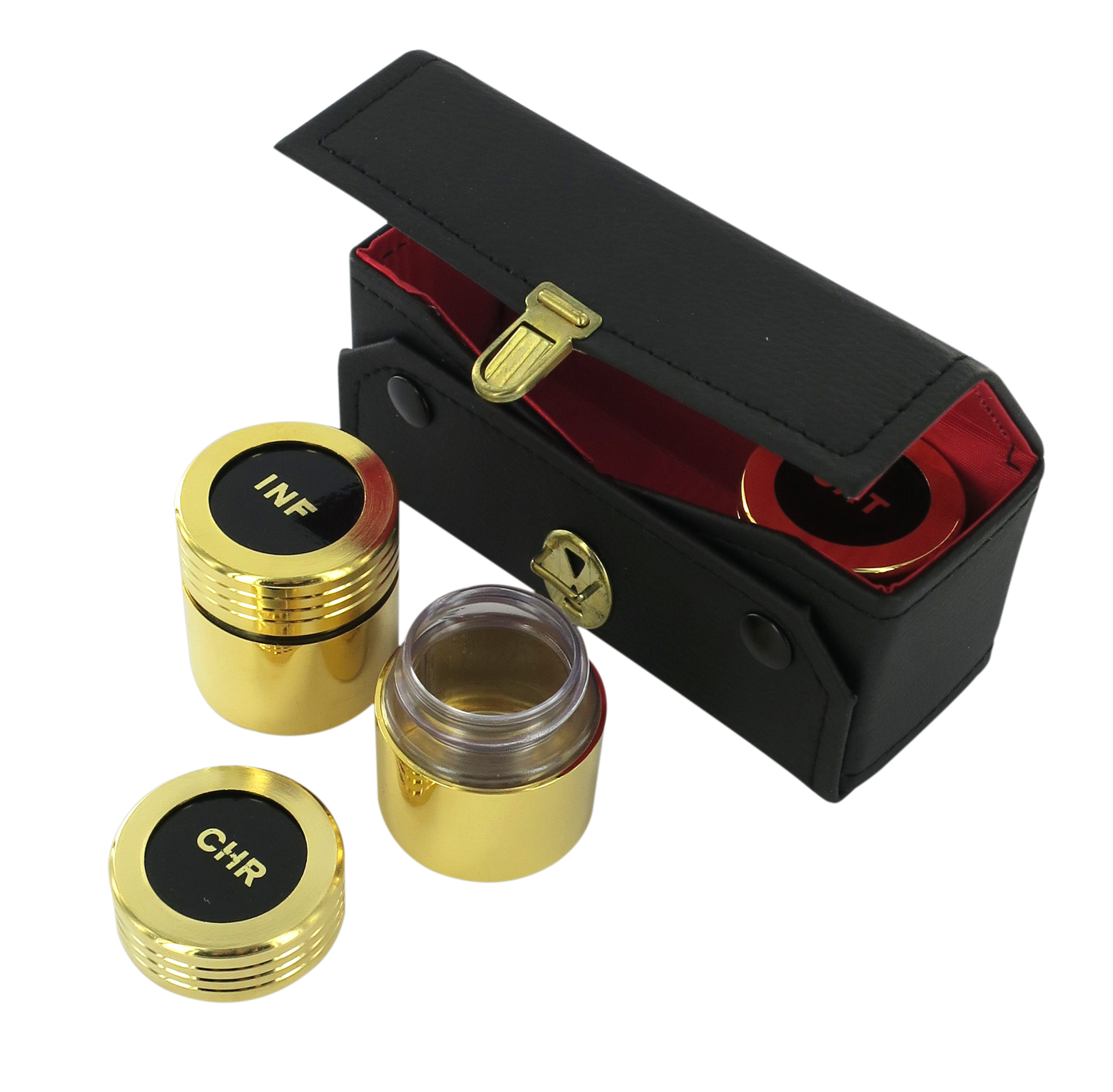 Astuccio ( kit celebrazione messa) con tre vasetti dorati