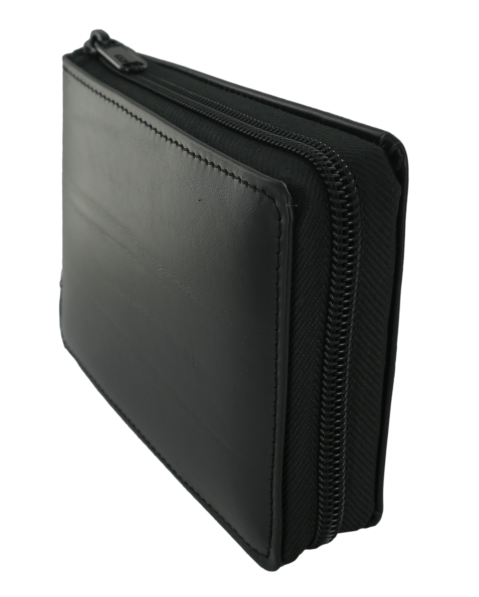 Materiale: pelle con fodera rossa. Dimensioni: 10 x 16 x 2 cm.