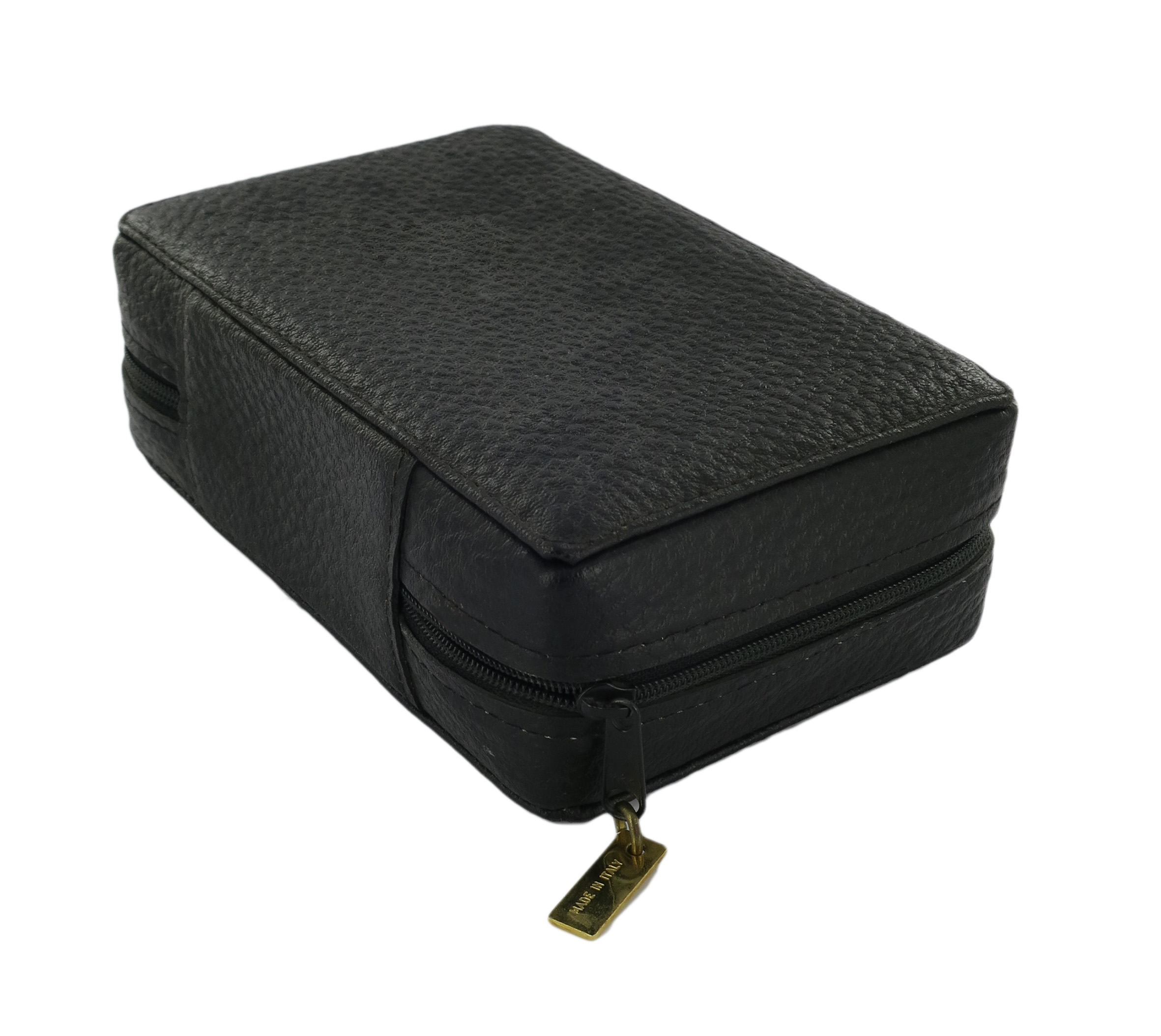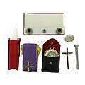Astuccio in pelle con 12 oggetti 10x16x5,5 cm. Portateca estraibile, altarino, Viatici.