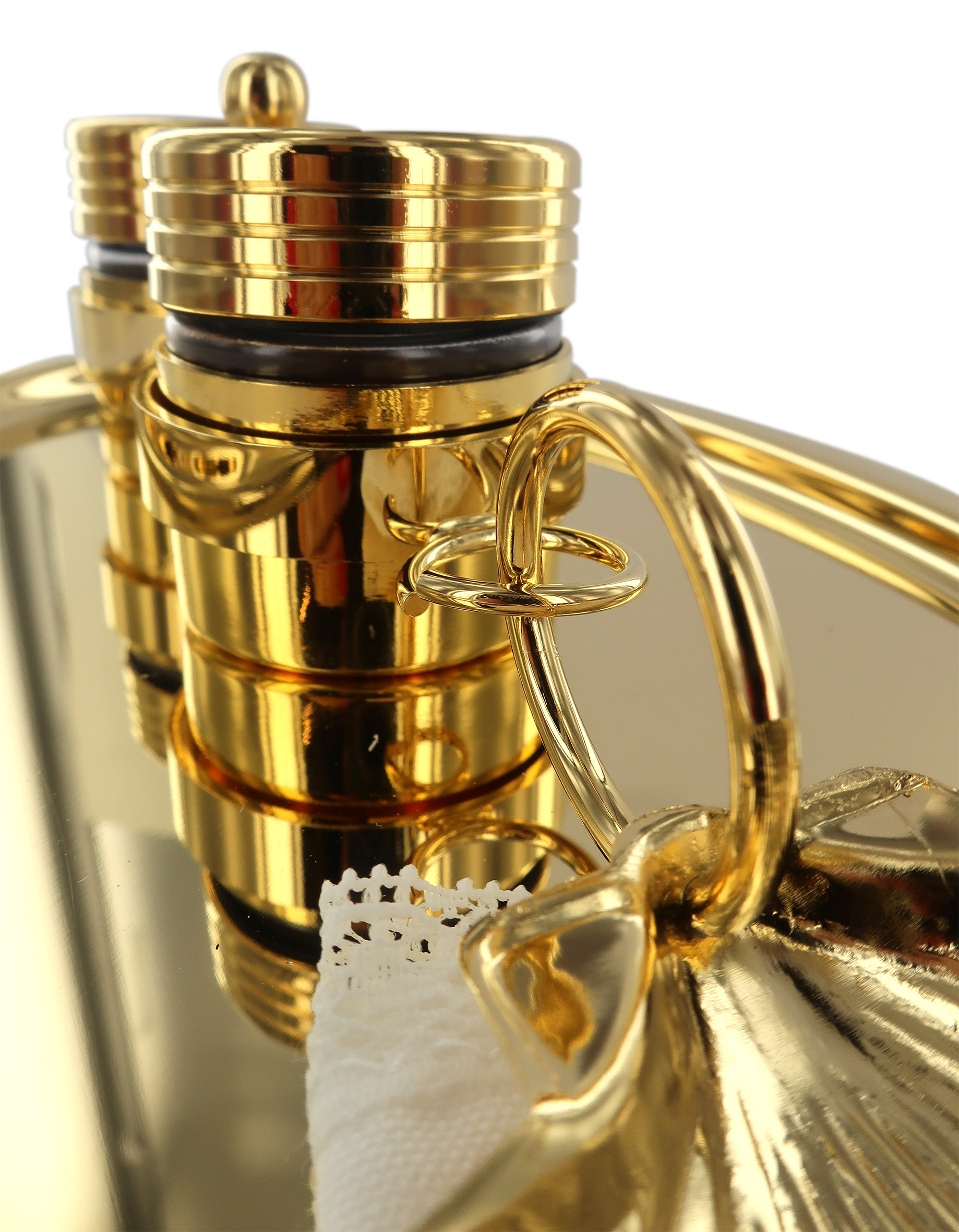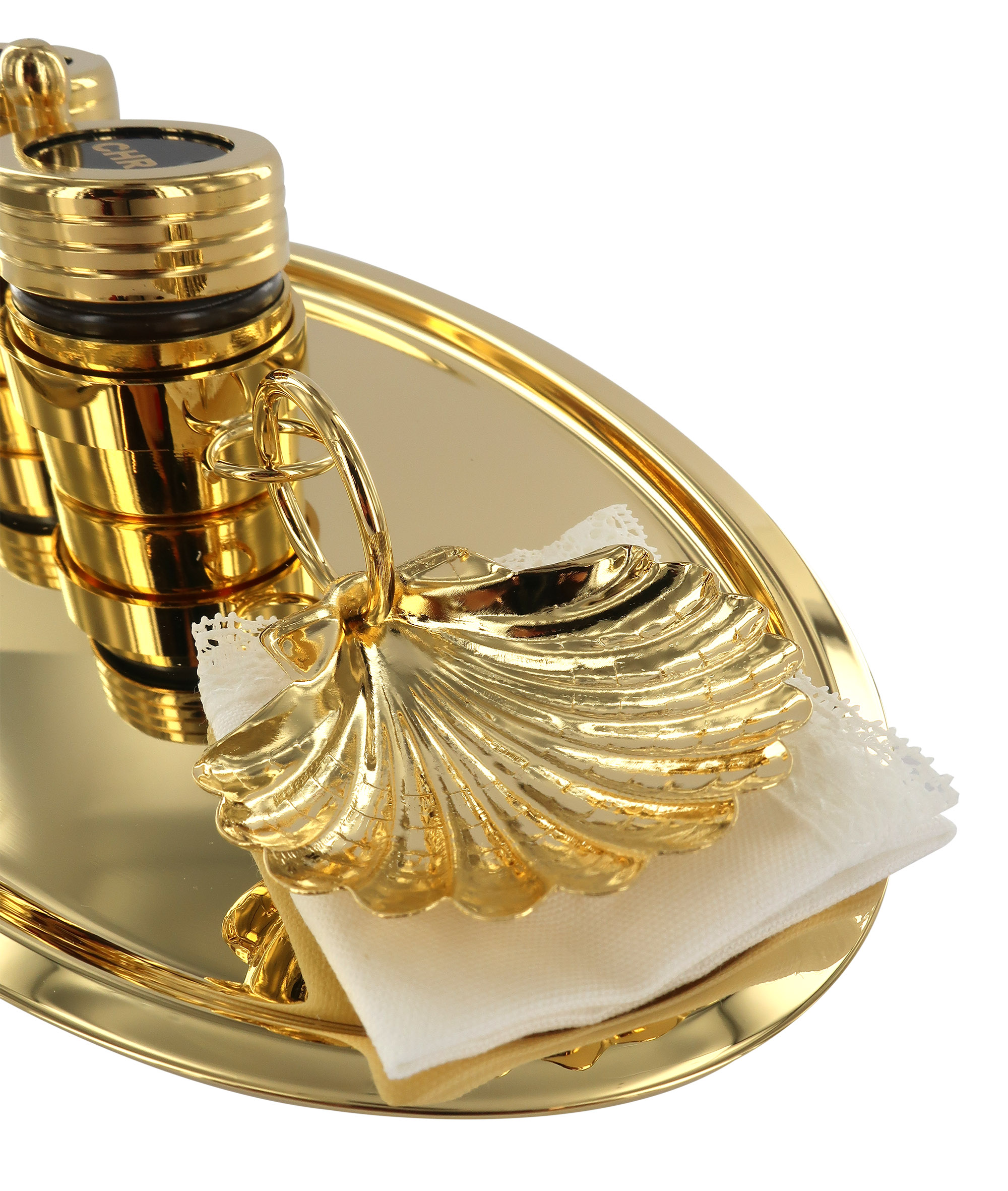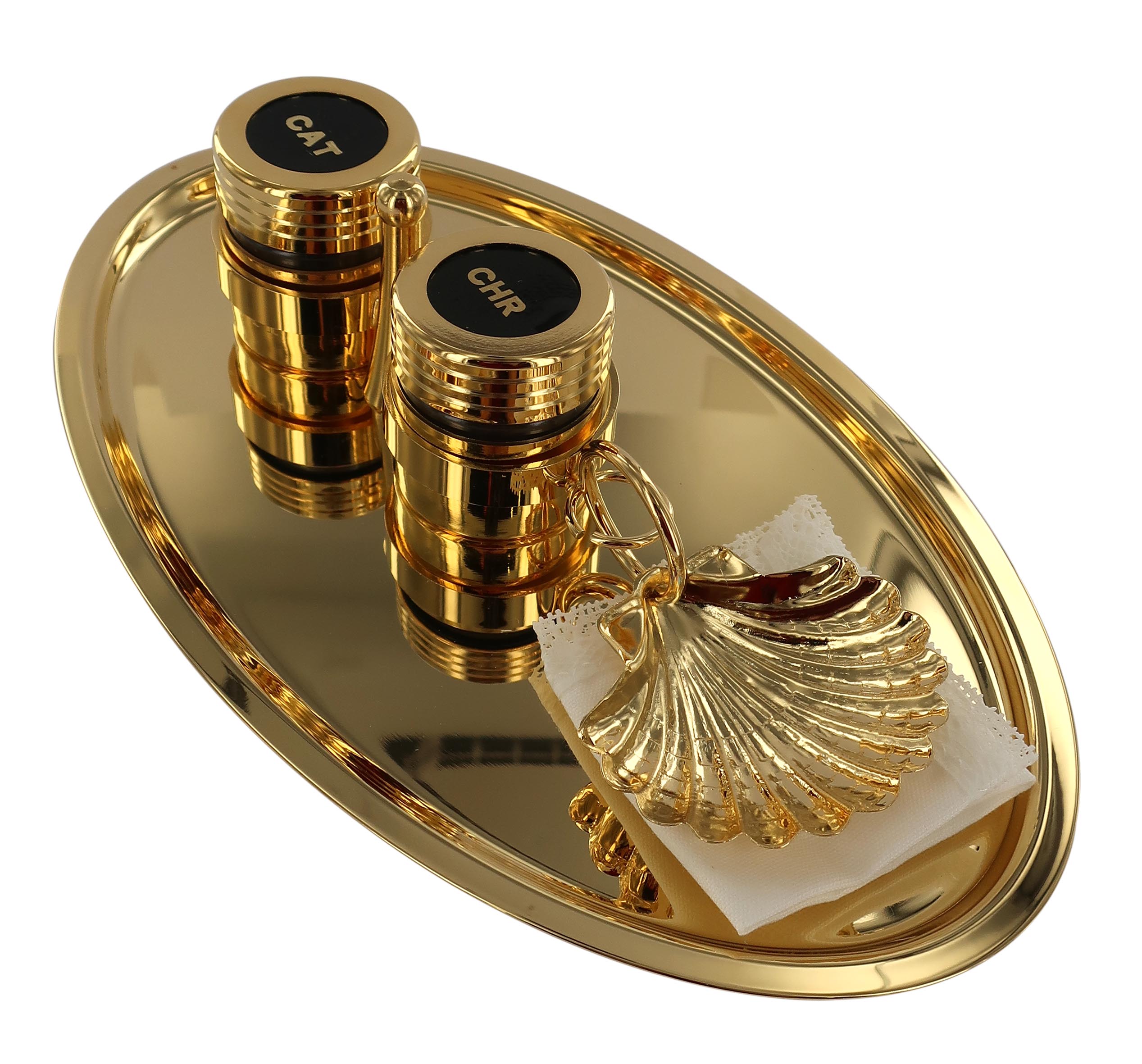 Servizio per battesimo e oli sacri in ottone dorato - 23 x 14 cm