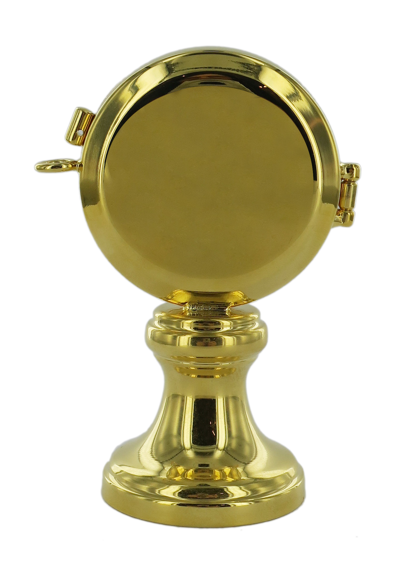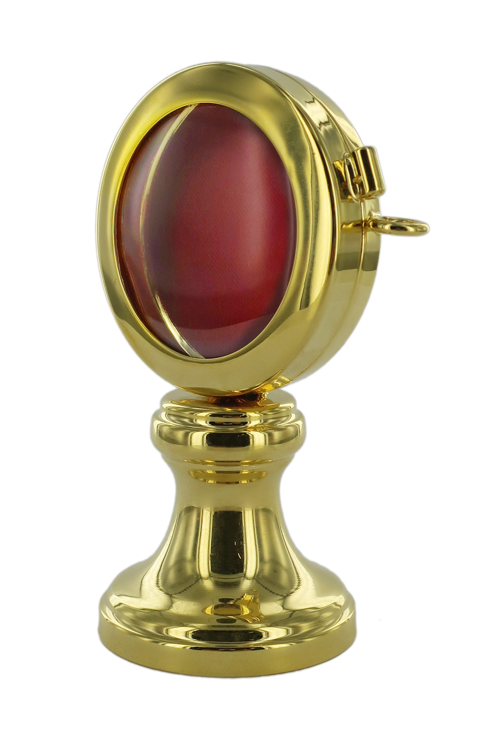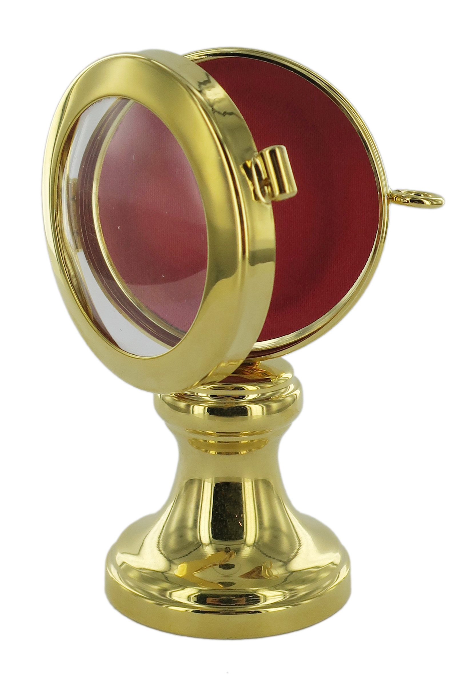 Reliquiario a ostensorio in ottone color oro - altezza 9,5 cm, Ø 5,3 cm