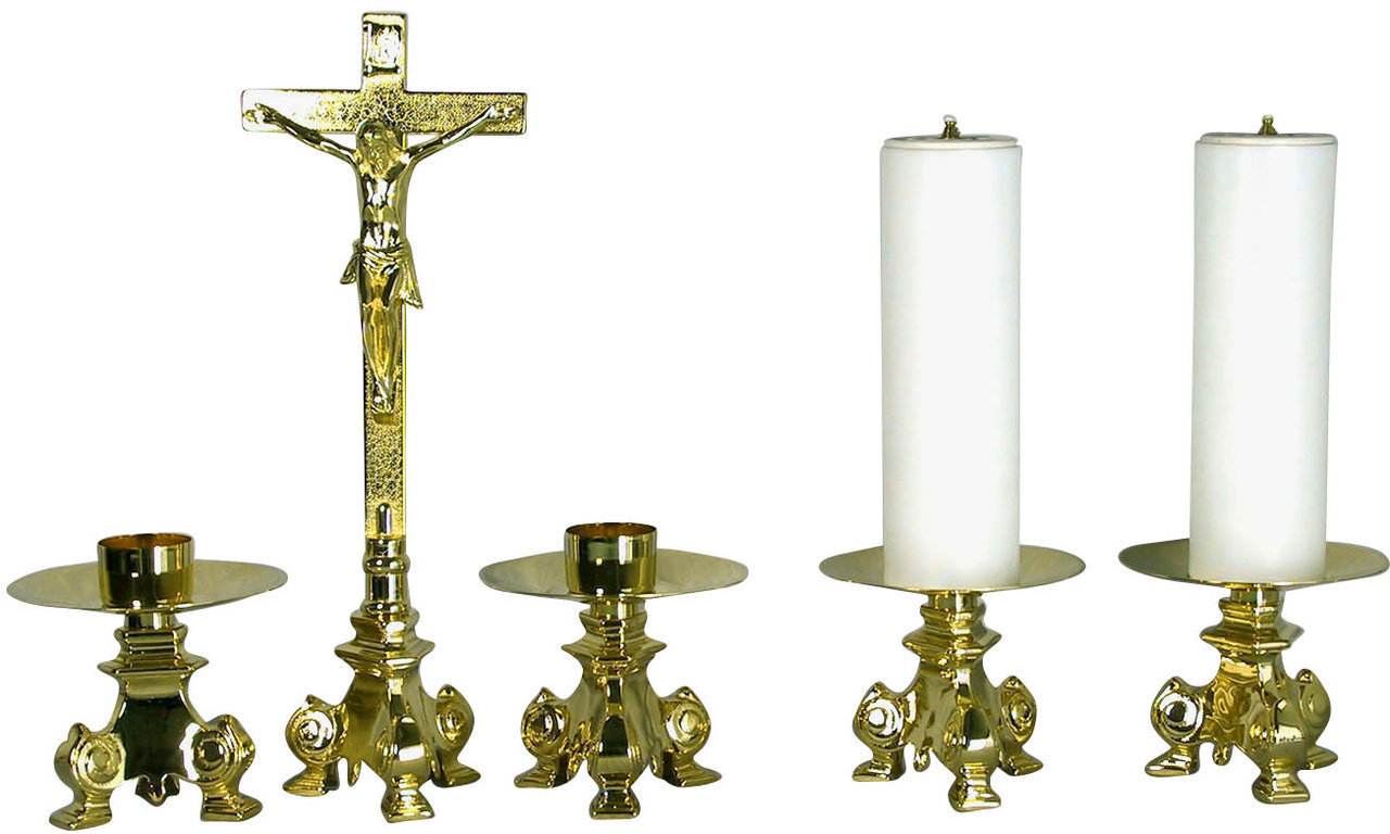 Candeliere Barocco dorato. Diametro del piatto: 15 cm, diametro del bossolo: 5 cm.