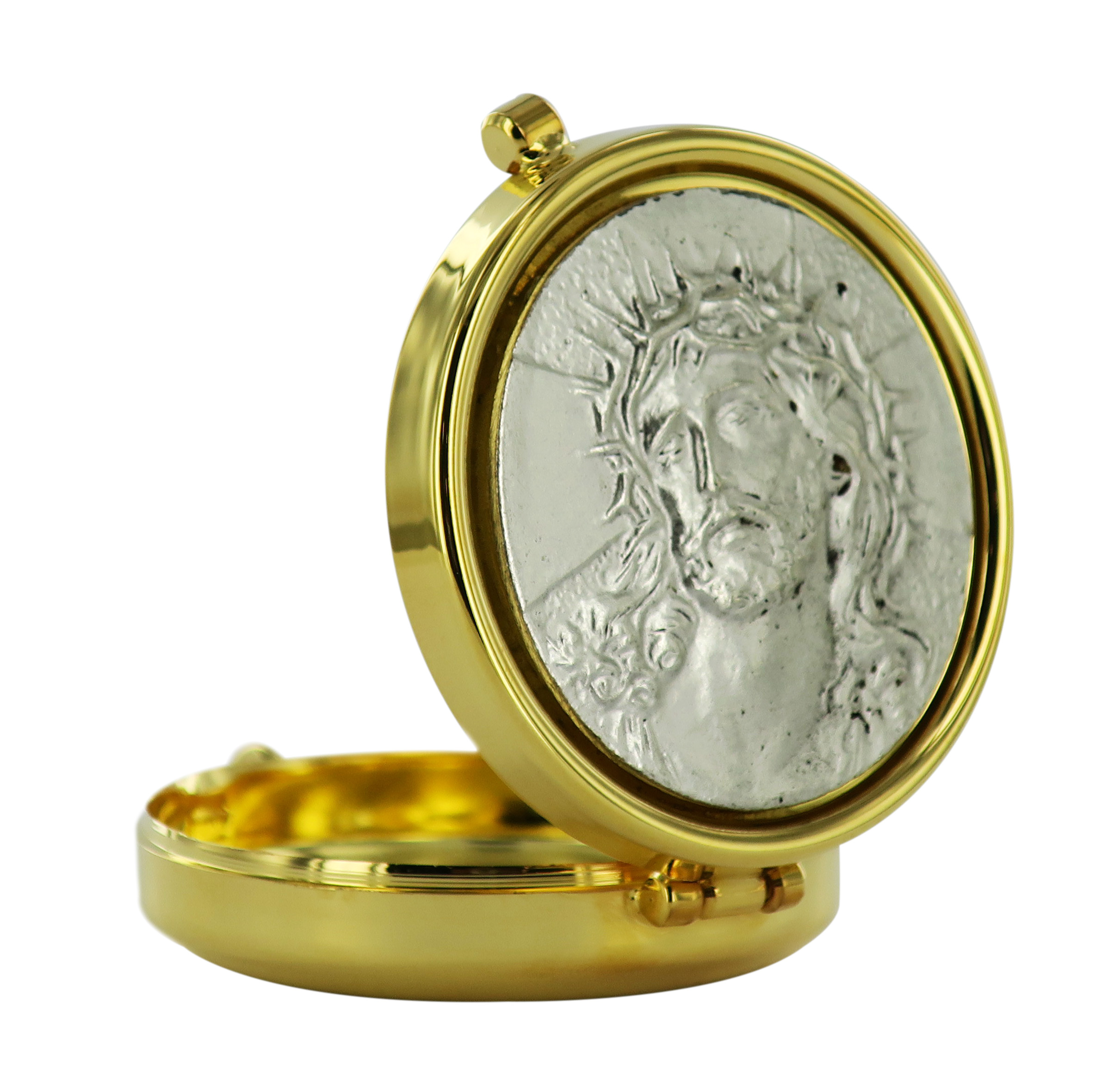 Teca eucaristica ostie con placca in peltro Ecce Homo - Ø 5,4 cm
