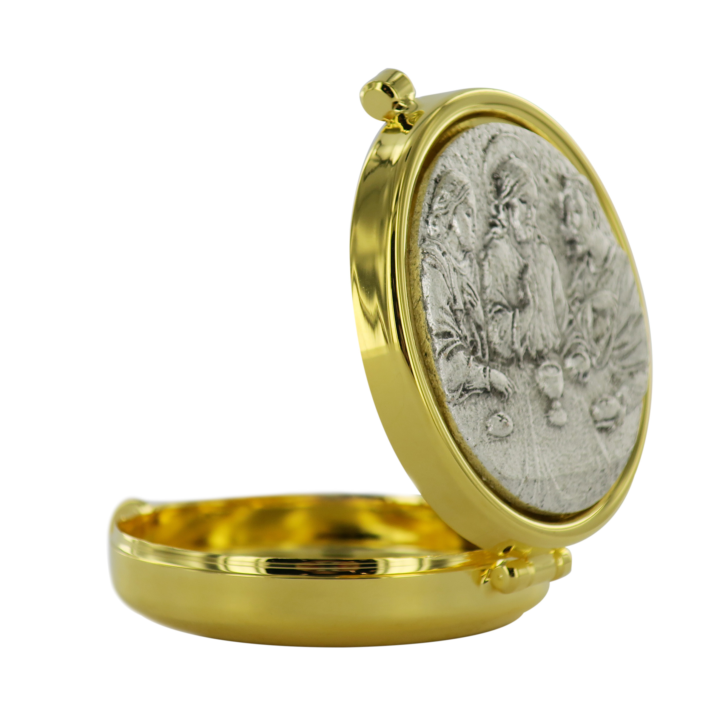 Teca eucaristica ostie con placca in peltro Ultima Cena - Ø 5,4 cm