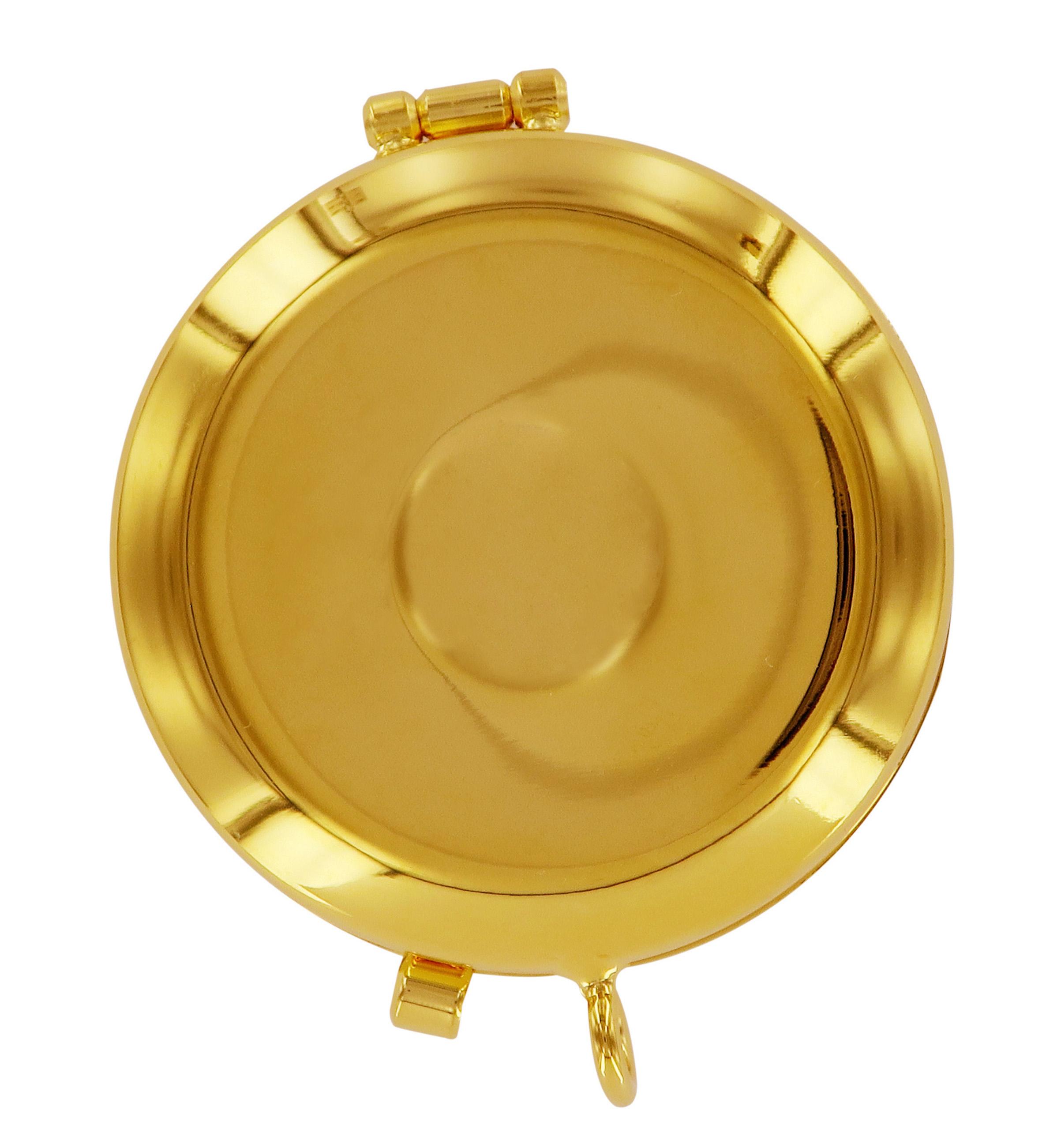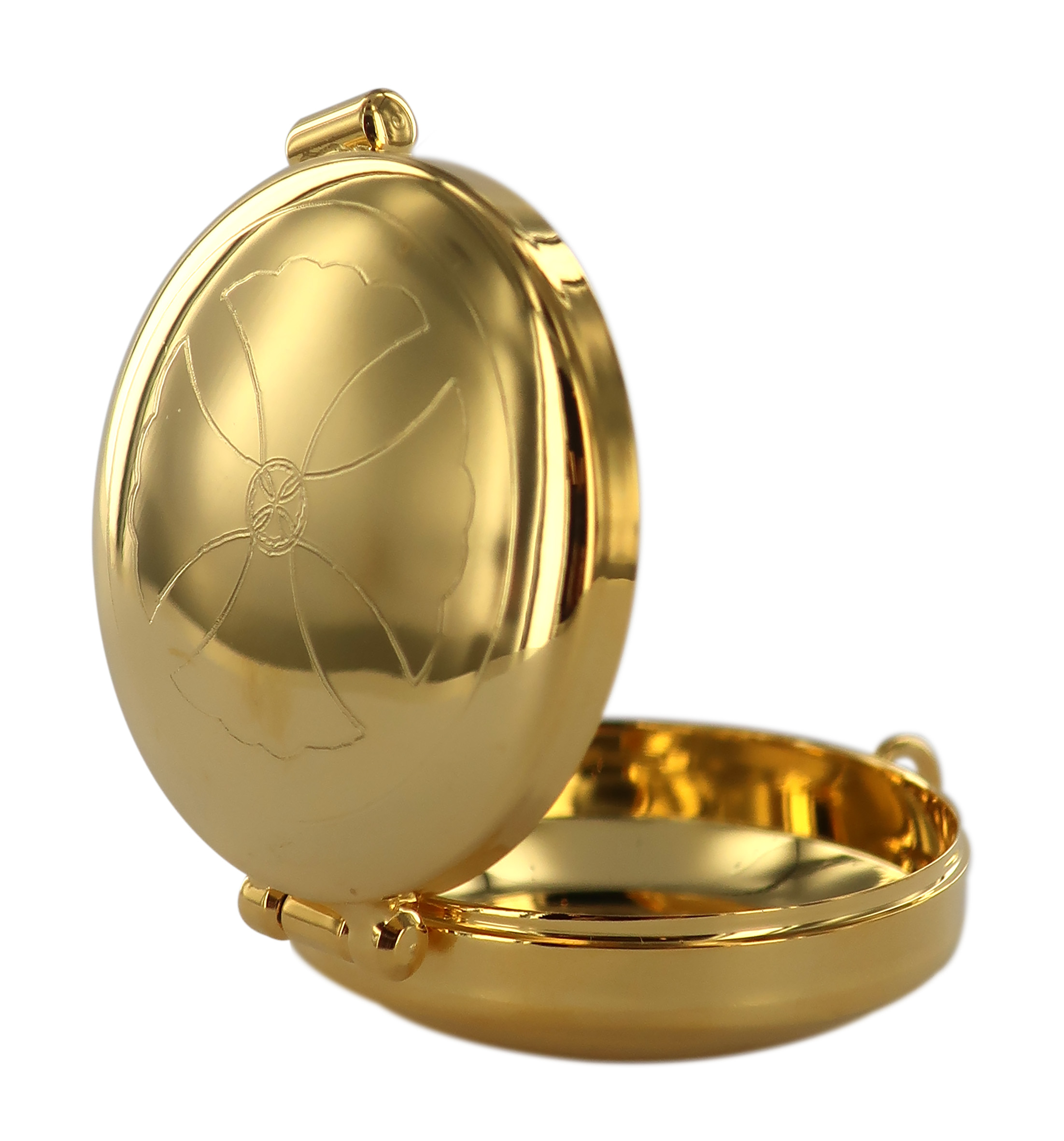 Teca eucaristica ostie in metallo dorato con incisione IHS - Ø 4 cm