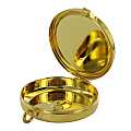 Teca in metallo dorato con smalto, modello COLOMBA. Diametro 4 cm. Realizzata in Italia.