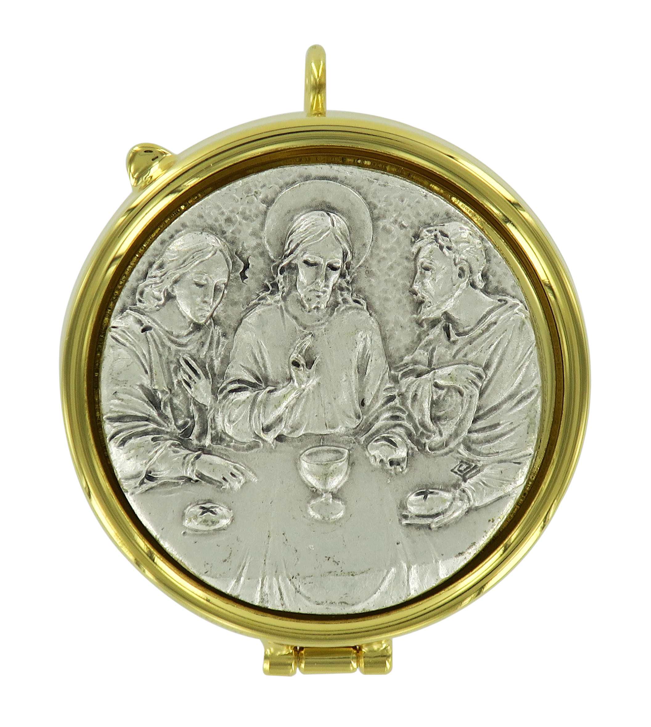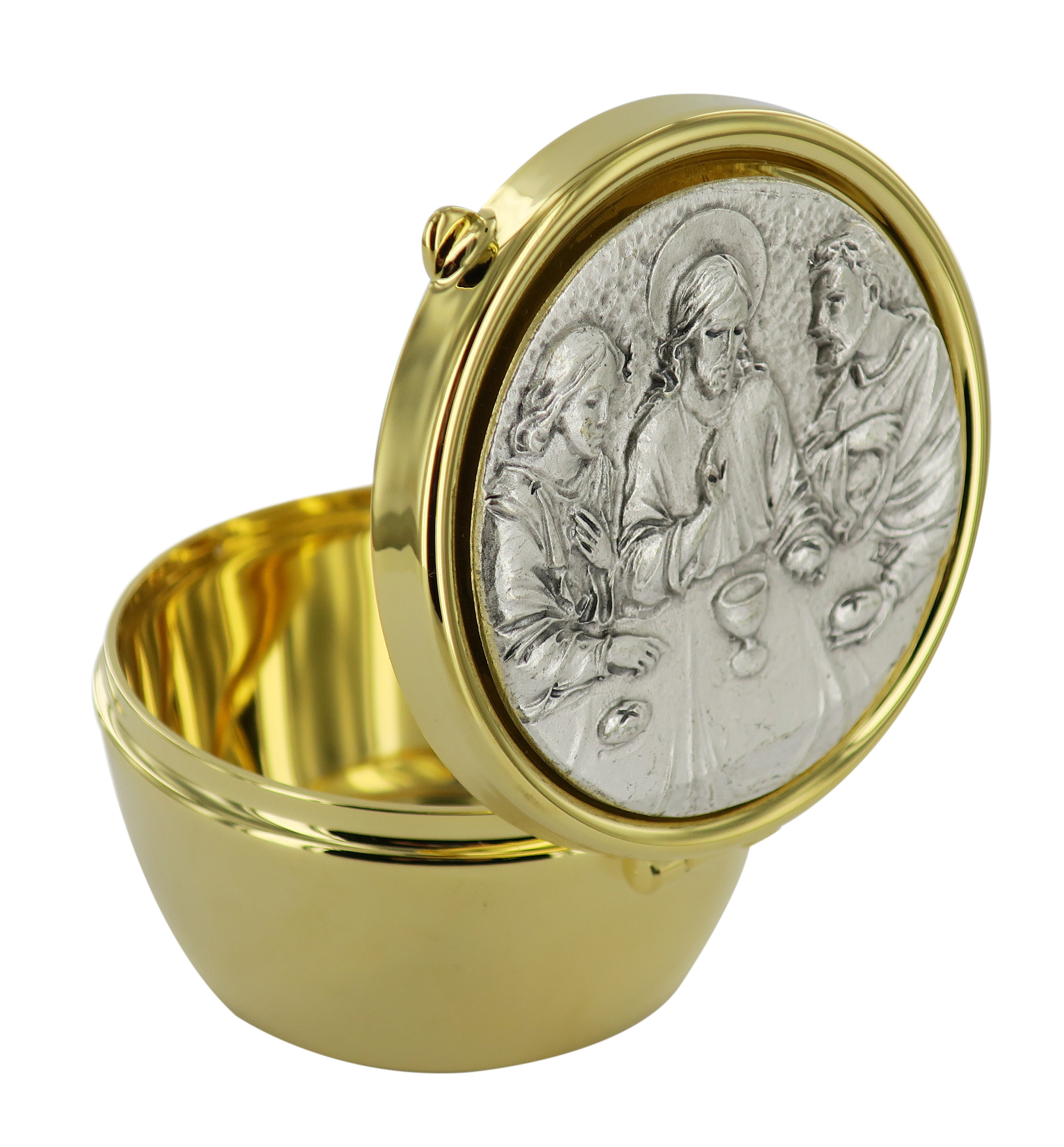 Teca eucaristica per 25 ostie circa, con placca Ø 5,4 cm, soggetto variabile