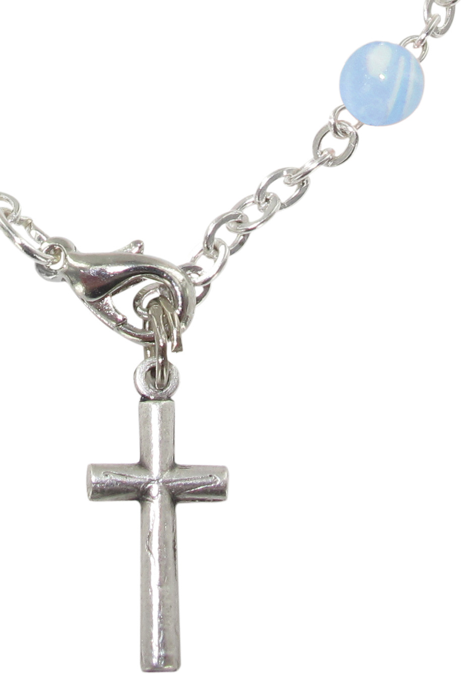 Braccialetto 11 grani imitazione perla azzurro legatura metallo