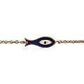 Braccialetto con piccolo pesce smalto blu in argento 925 con bagno in oro rosa