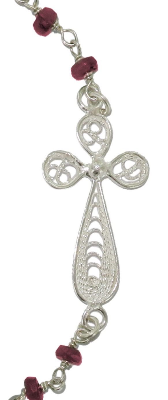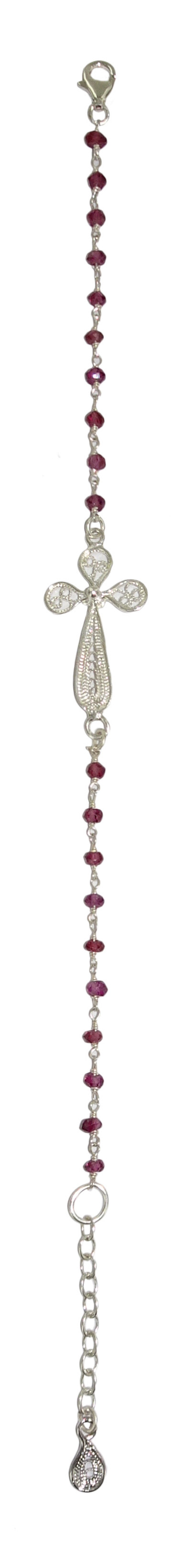 Braccialetto croce filigrana argento 925 rodiato e ametista