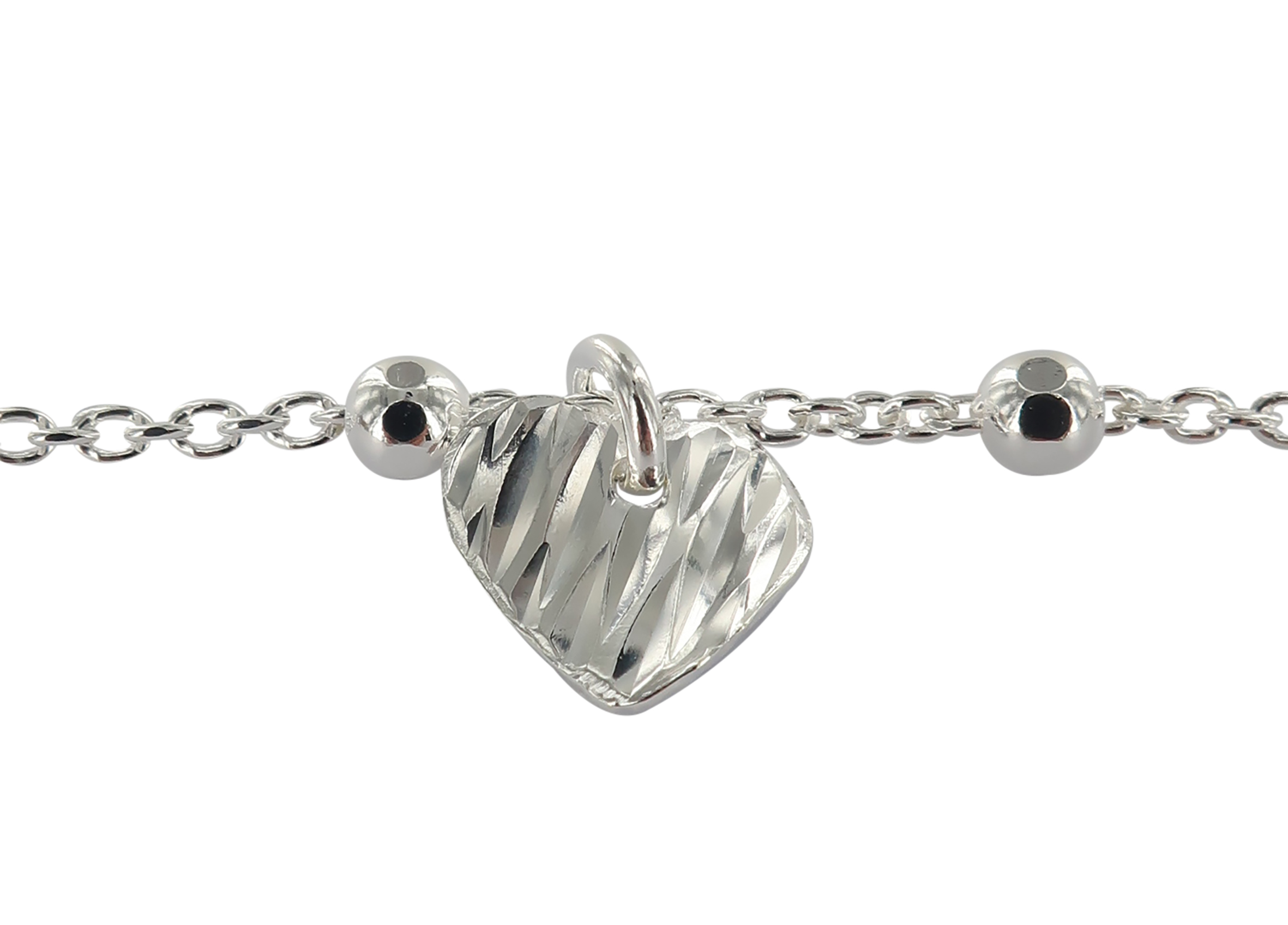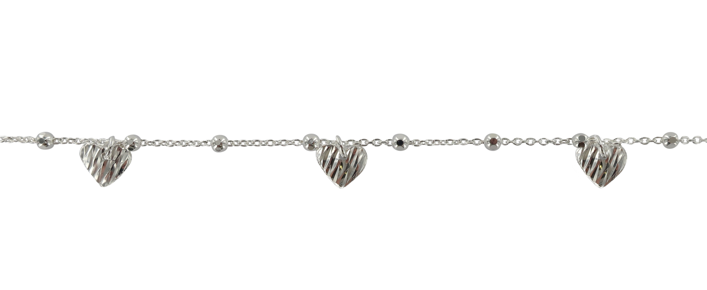 Braccialetto in argento 925 con 11 grani e tre cuori