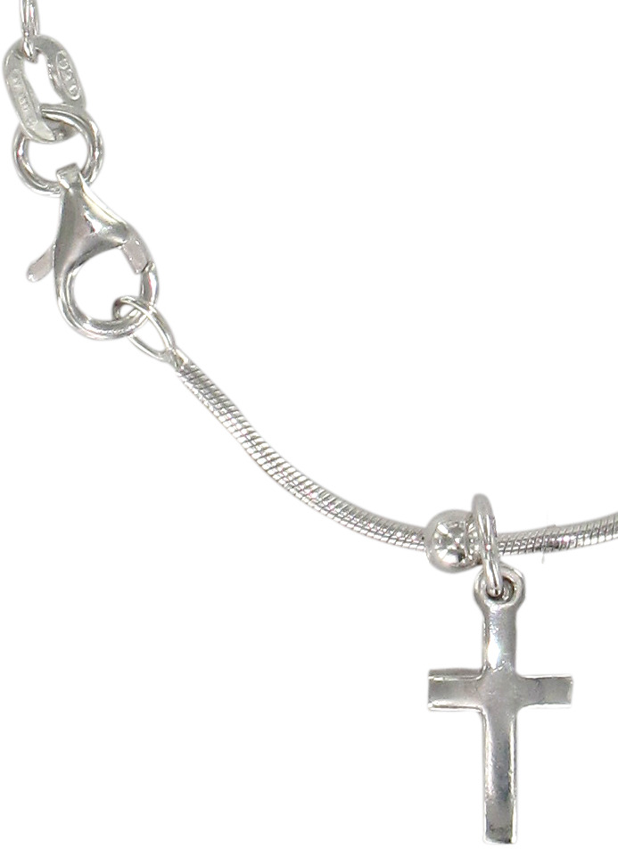 Il braccialetto si presenta con una piccola crocetta di cm 0,7 e undici grani tondi di mm 2.
