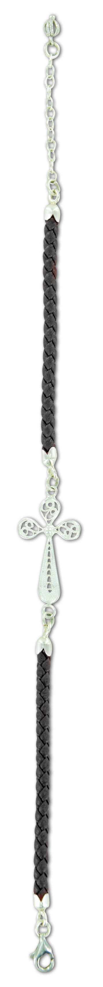 Braccialetto in ecopelle nera e croce filigrana argento 925
