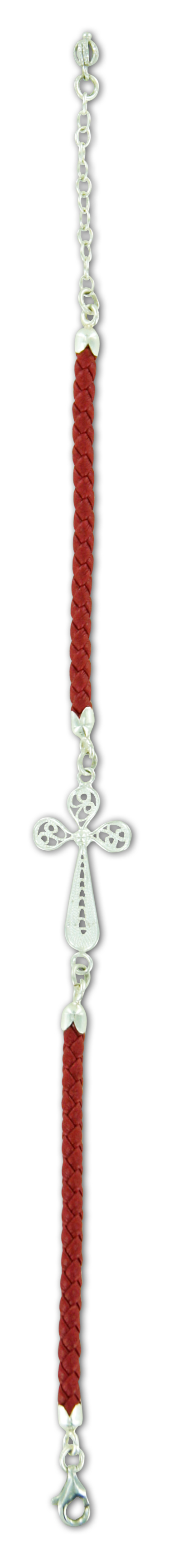 Braccialetto in ecopelle rossa e croce filigrana argento 925