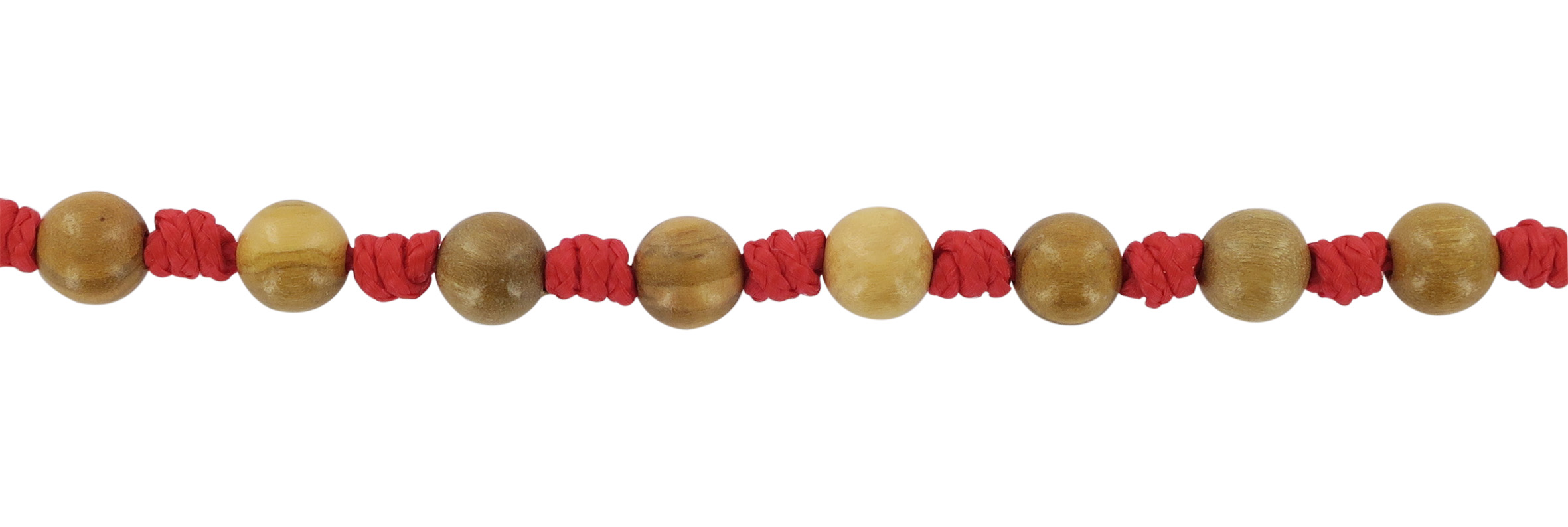 Braccialetto decina con 10 grani in legno ulivo tondo con legatura in corda