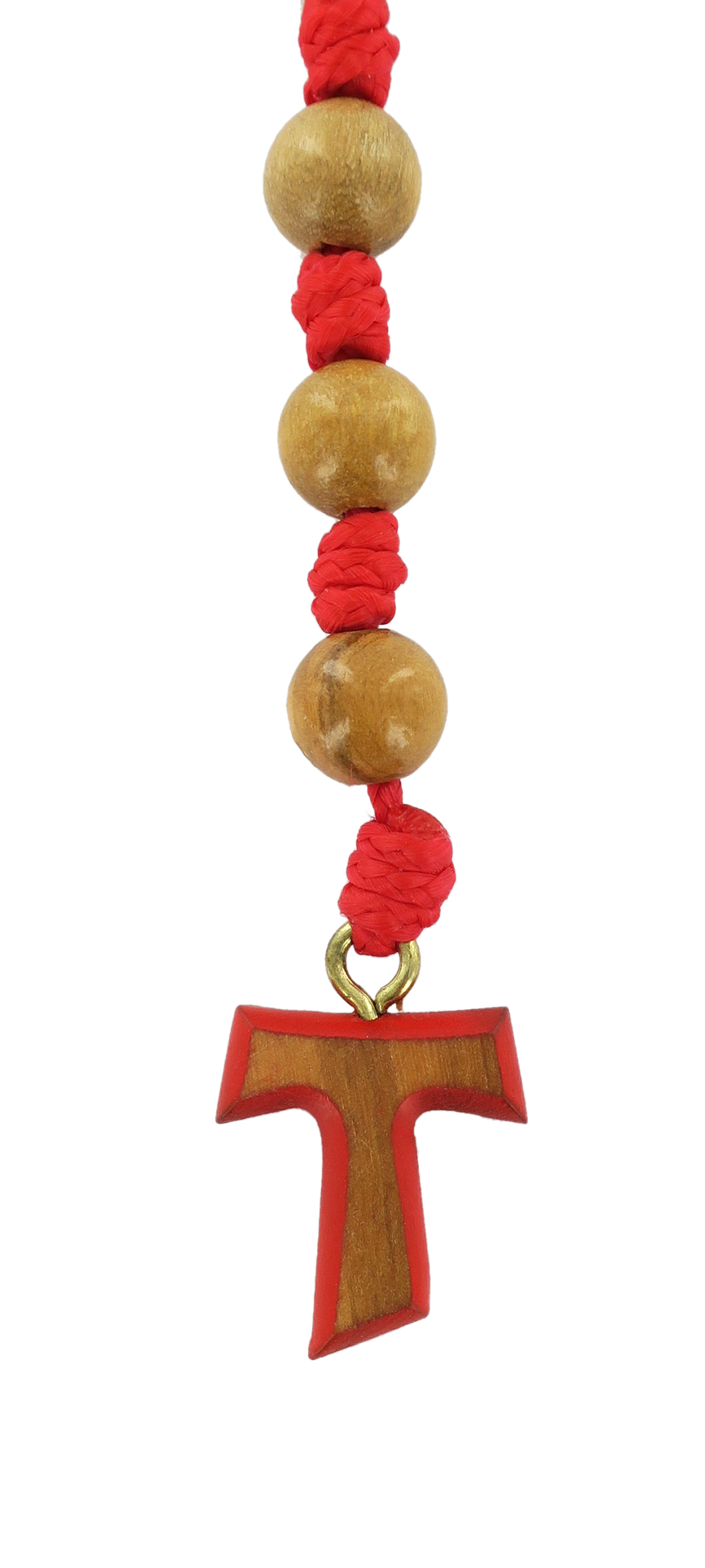 Braccialetto decina in corda di colore rosso caratterizzato da nodini posti fra un grano e l'altro.