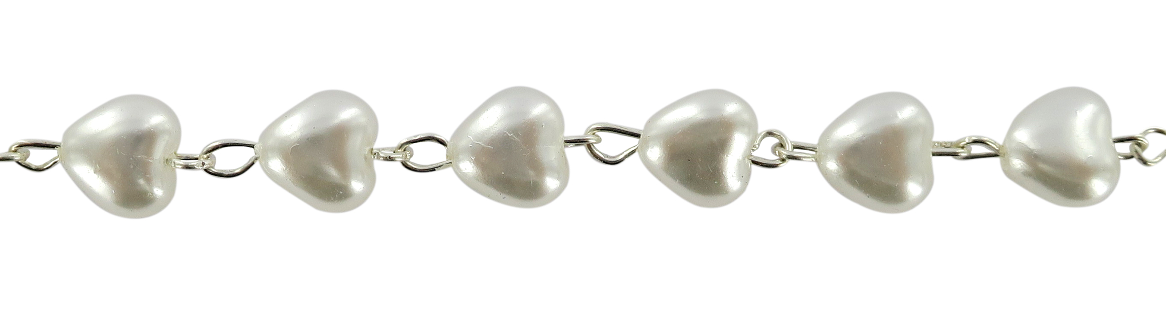 Braccialetto con 11 grani a forma di piccoli cuoricini di 0,5 cm in vetro bianco.