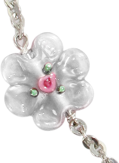 Braccialetto con grani a roselline in vetro bianco e argento.