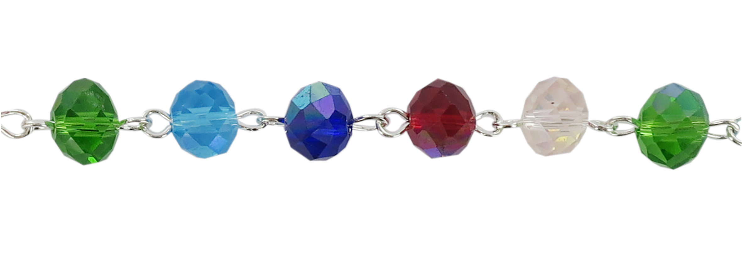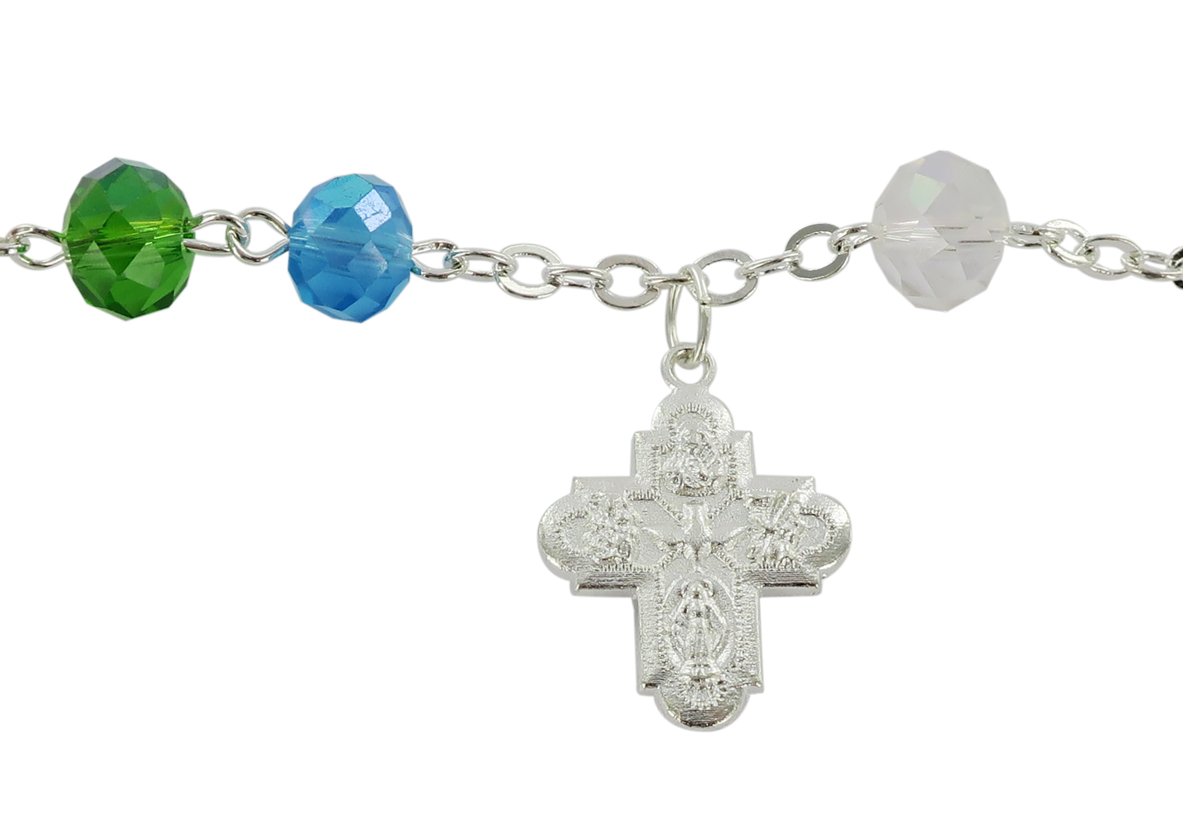 Braccialetto rosario in cristallo con 11 grani sferici schiacciati multicolore e croce di altezza