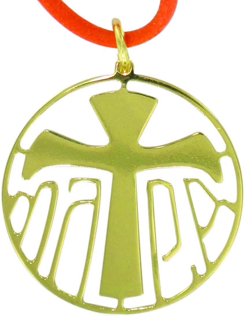 Ciondolo tondo della linea MATER con il simbolo Tau (Croce di San Francesco d'Assisi).
