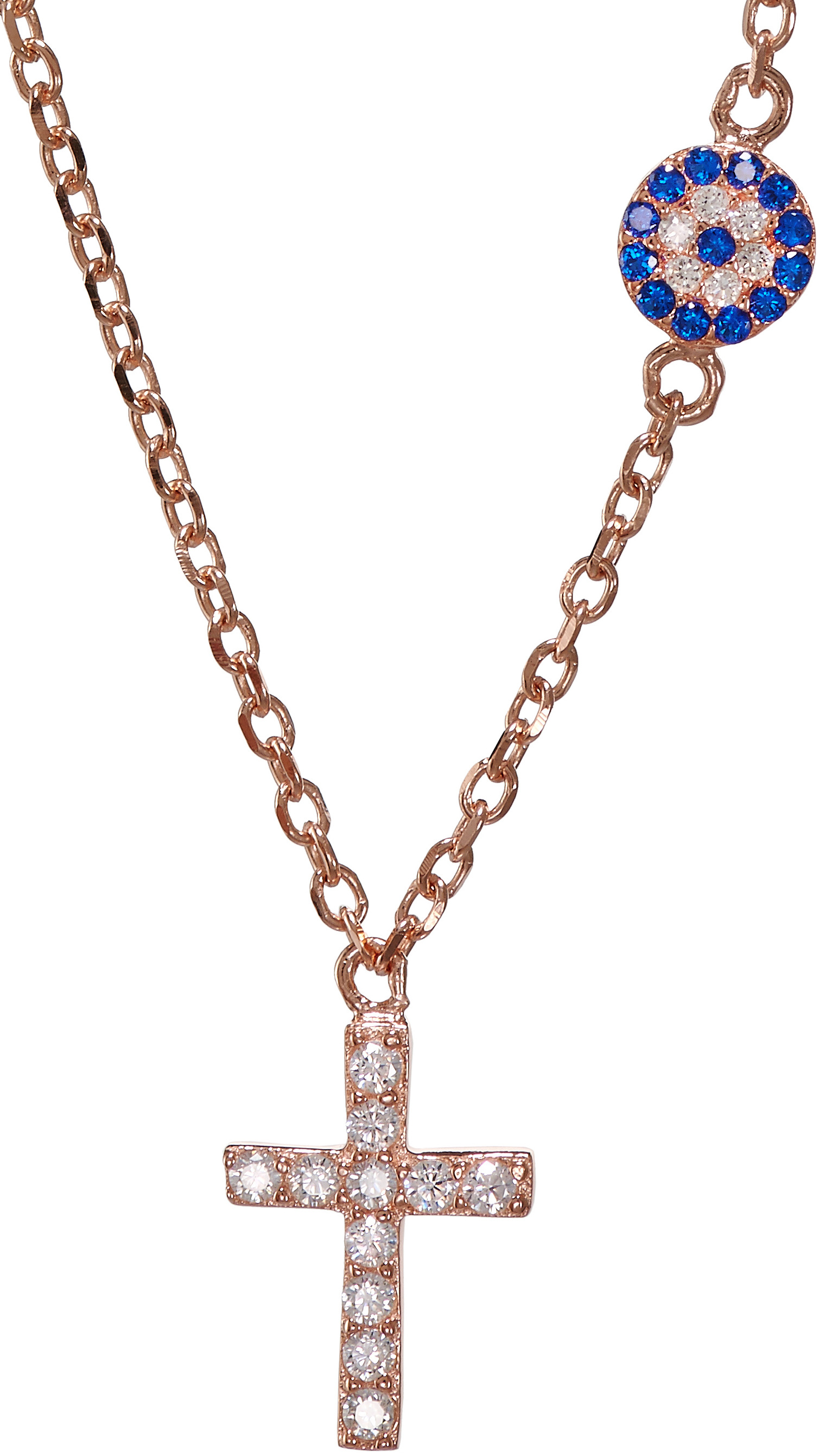 Collana con croce cm 1,4 con strass e medaglia in argento 925 con bagno in oro rosa
