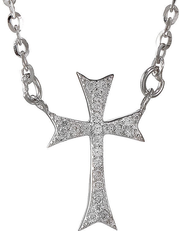 Collana in argento con bagno in oro bianco con croce di strass bianchi da cm 1,5.