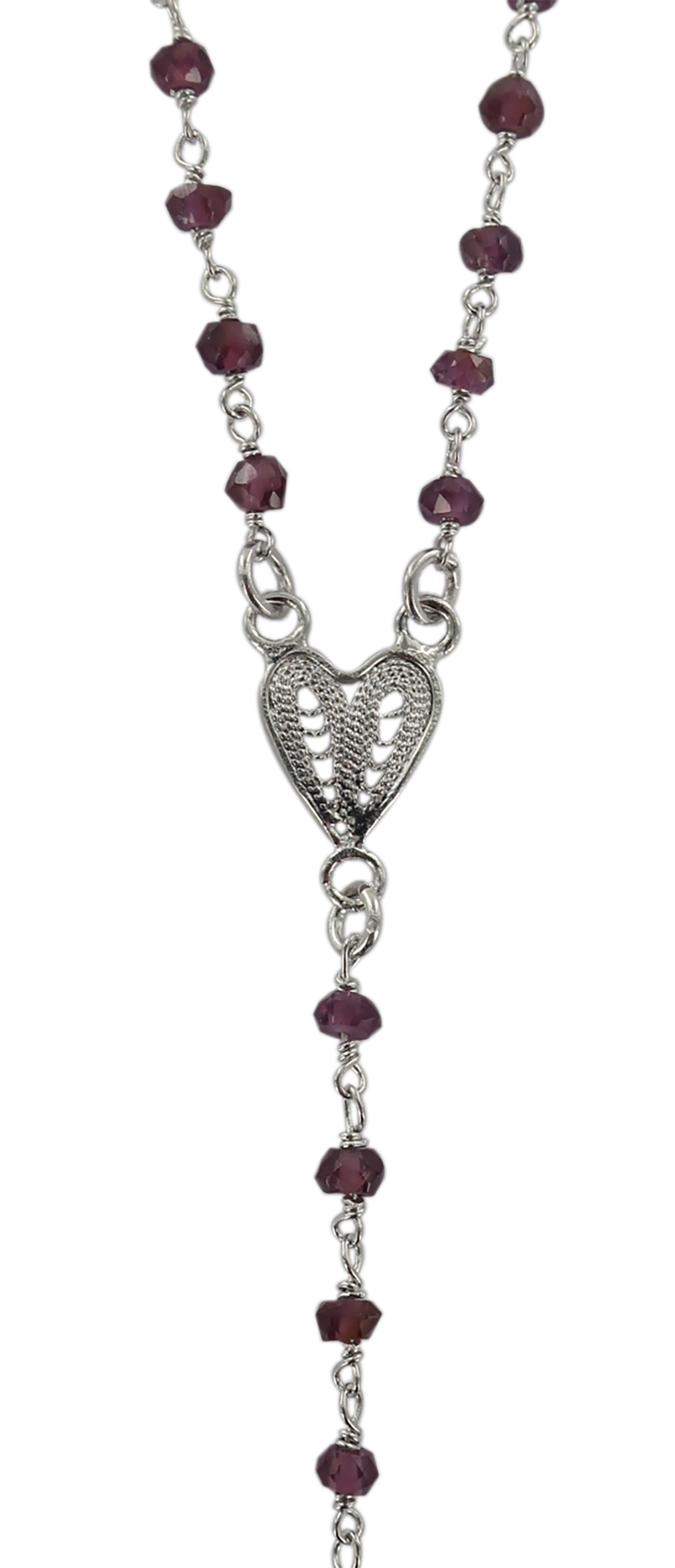 La particolarità di questo articolo,che è disponibile anche con grani in giada o in ametista,è dato dalla croce e dalla crocera in filigrana finemente lavorata a mano da artigiani italiani.