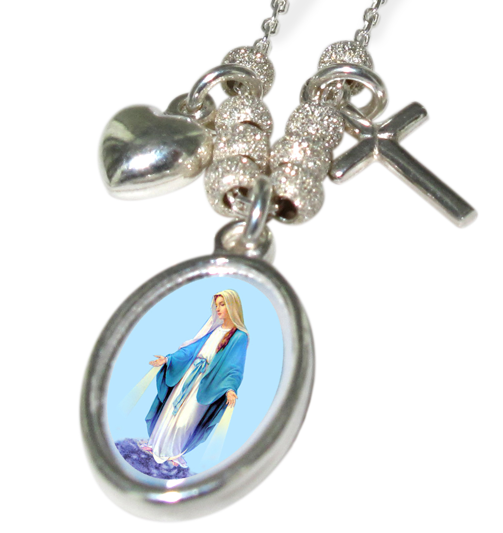 Collana con Medaglietta Madonna Miracolosa e Ciondoli in Argento 925