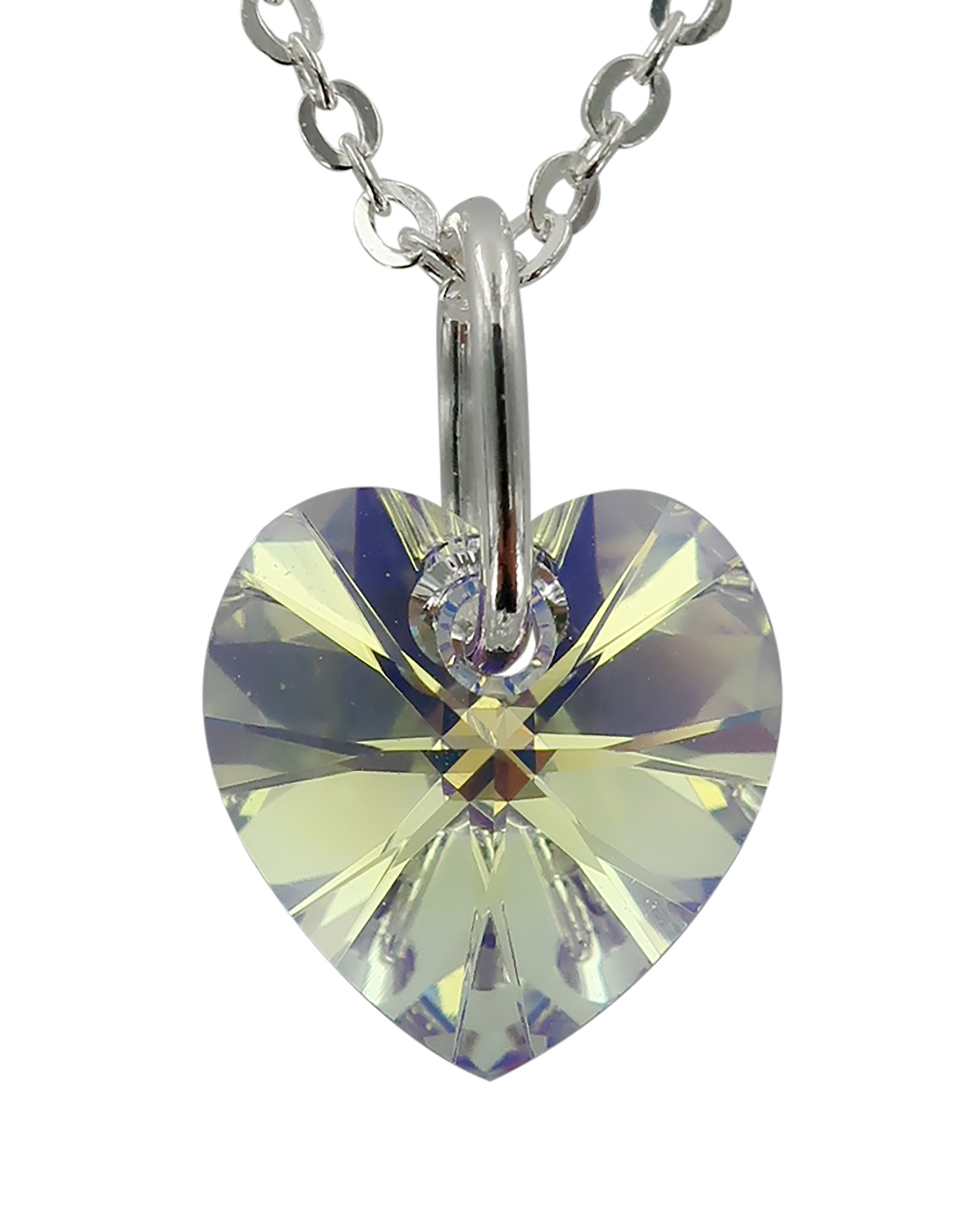 Il ciondolo, un cristallo a forma di cuore di 1 cm, crea degli affascinanti giochi di colori.