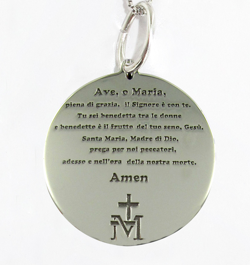 STOCK: Collana in argento 925 con medaglia con preghiera Ave Maria cm 1,8