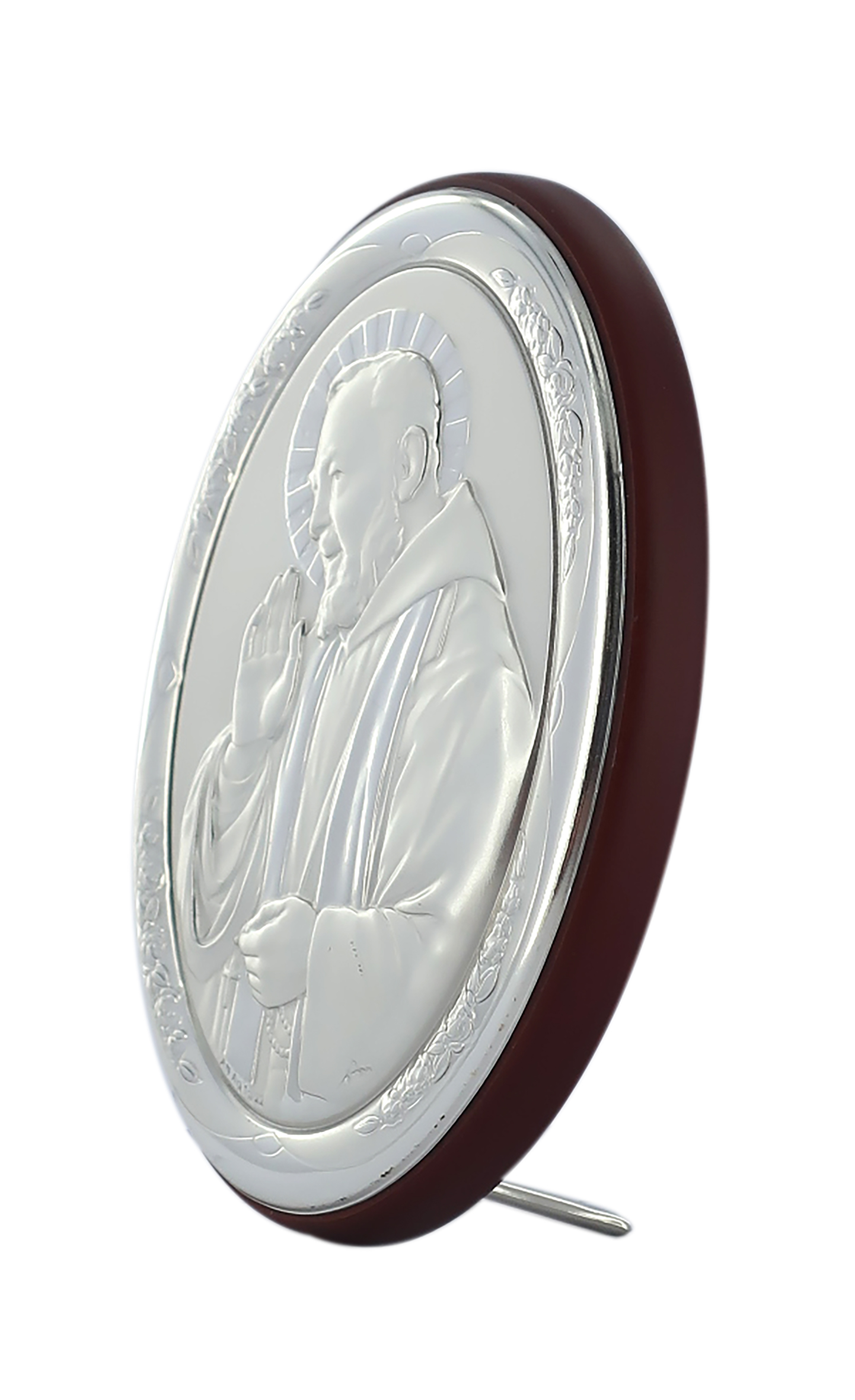 Quadretto da Parete o Appoggio Padre Pio, Argento e Legno, 5 x 7 Cm