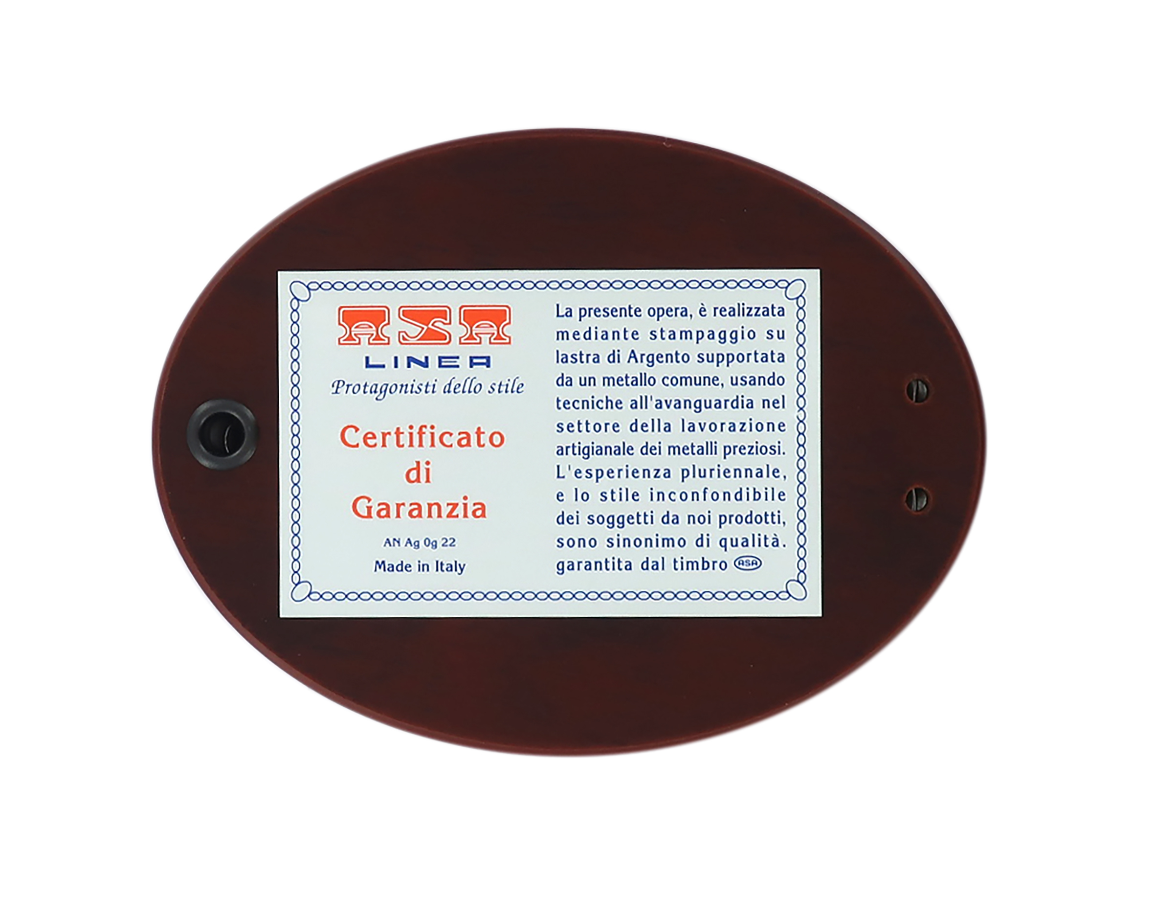 Il bassorilievo su lamina in argento 925 ci presenta il particolare del Padre Pio. Il retro in legno scuro presenta un appoggio e un piccolo foro per essere appeso al muro.