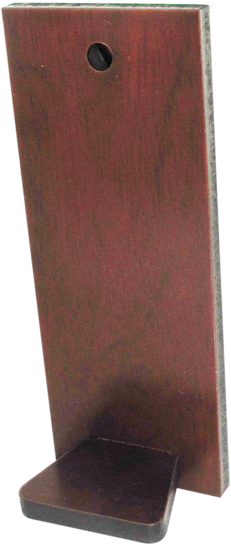 Il retro in legno scuro presenta un appoggio e un piccolo foro per essere appeso al muro.