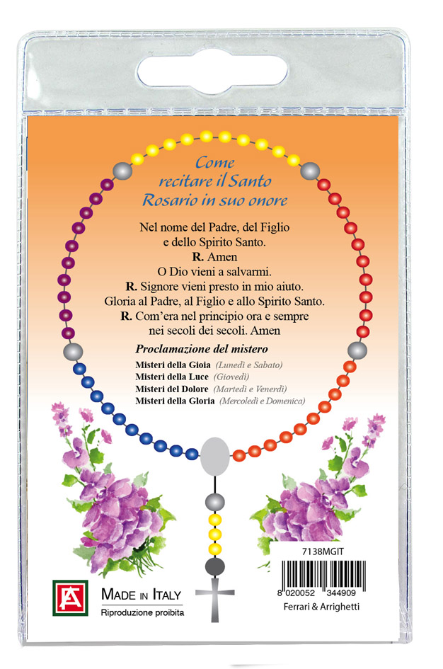 Decina di Santa Maria Goretti, in blister trasparente con preghiera, testi in italiano