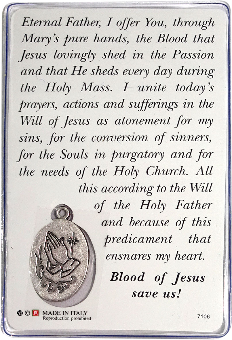 Card della Cattedrale di Westminster con sul retro una preghiera in inglese dedicata alla Vergine Maria. Nella card è inserita una medaglia resinata raffigurante la croce. La misura di questa card è di cm 5,5 x 8,5.