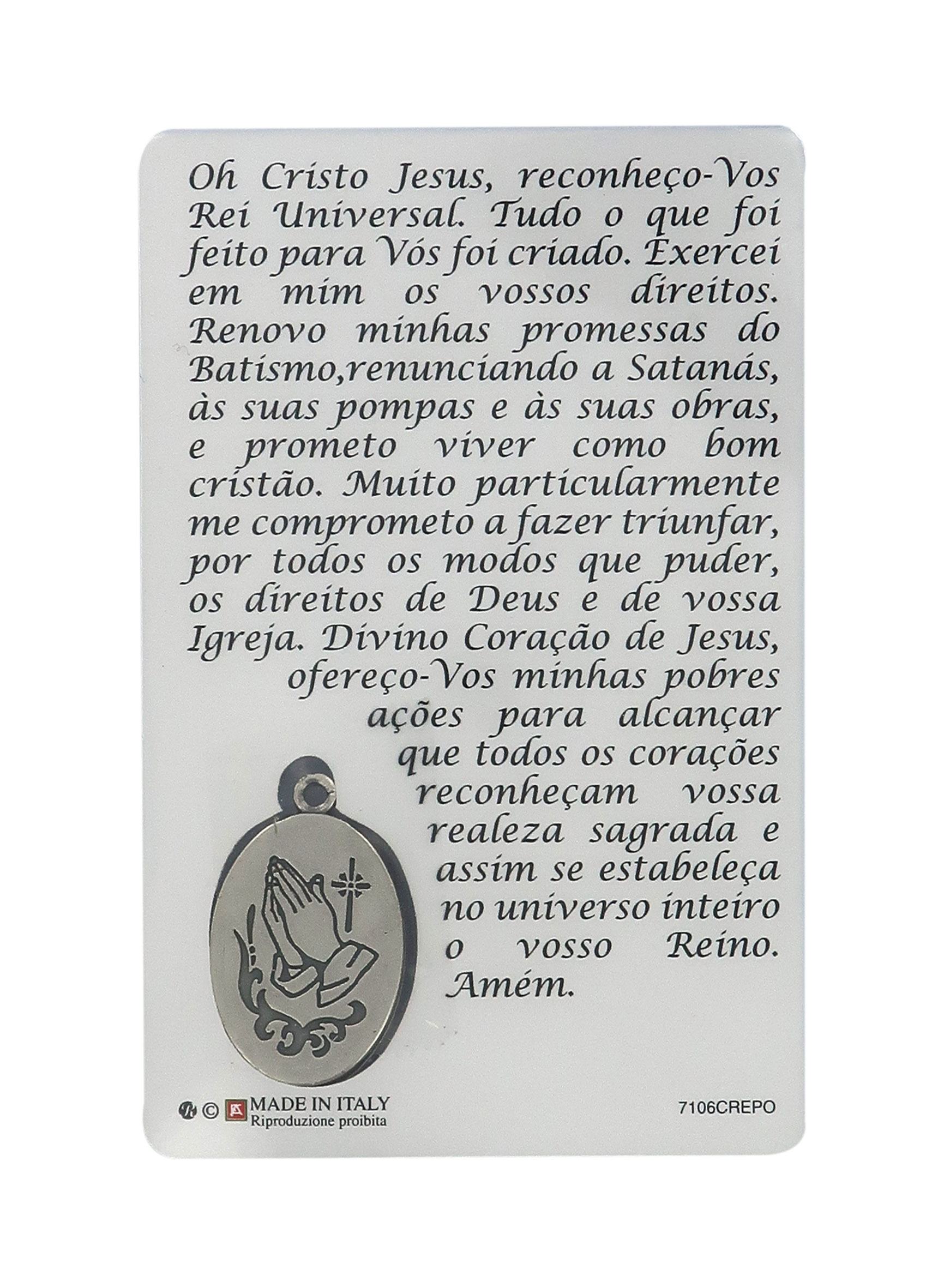 Card Cristo Rei con medaglia resinata - 5,5 x 8,5 cm - in portoghese