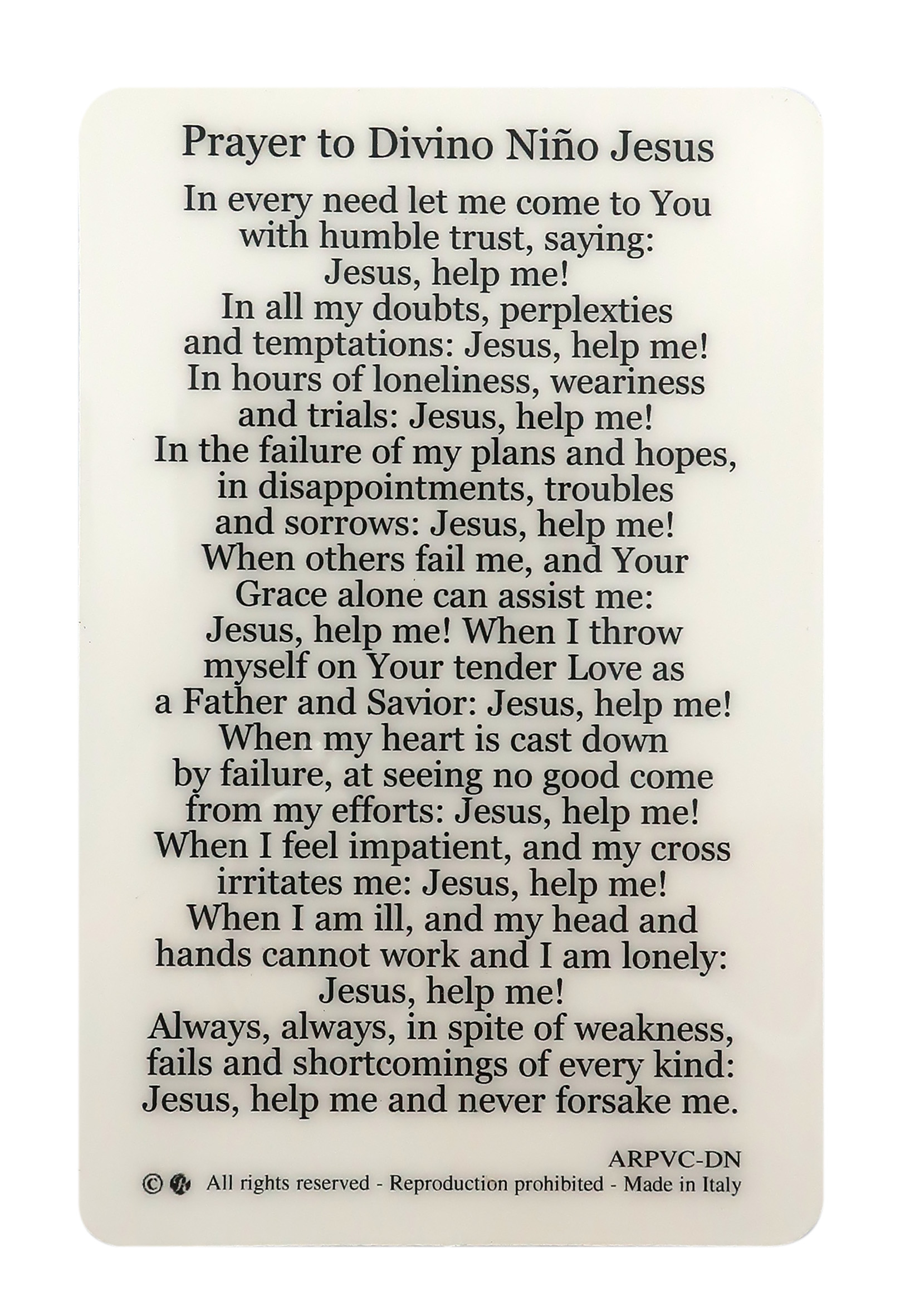 Card Divino Gesù Bambino in PVC - 5,5 x 8,5 cm - inglés