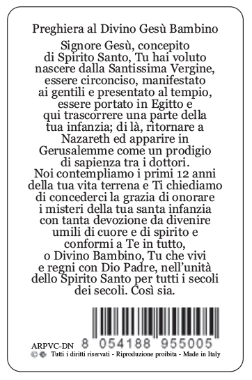 Card Divino Gesù Bambino in PVC - 5,5 x 8,5 cm - italiano