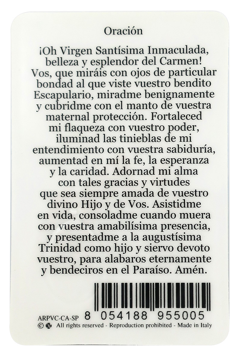 Card Madonna del Carmelo in PVC - 5,5 x 8,5 cm - spagnolo