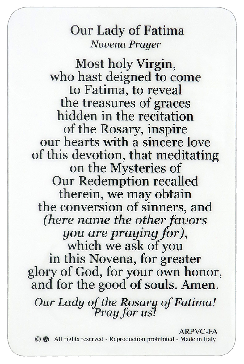 Card Madonna di Fatima in PVC - 5,5 x 8,5 cm - inglese