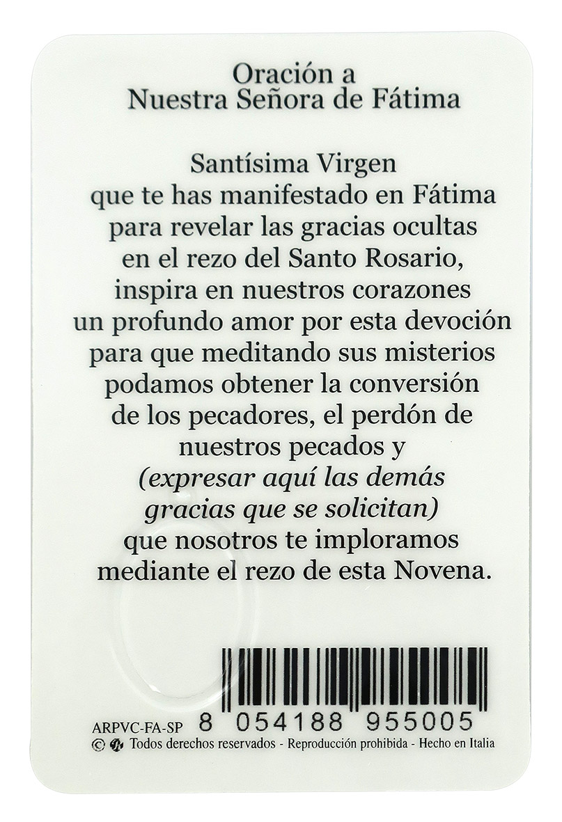 Card Madonna di Fatima in PVC - 5,5 x 8,5 cm - spagnolo