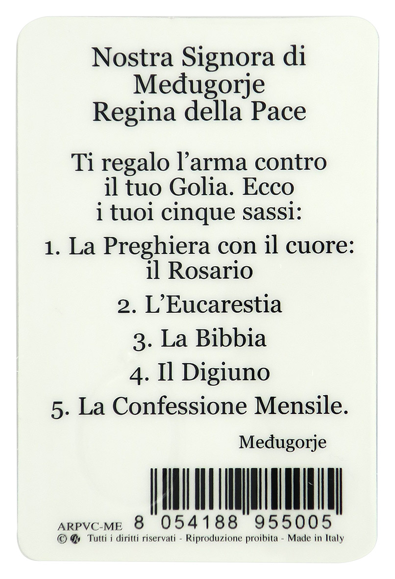 Card Madonna di Megjugorje in PVC - 5,5 x 8,5 cm - italiano