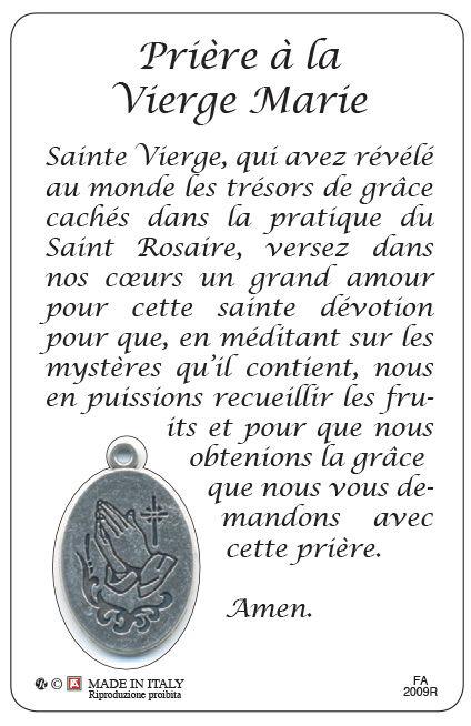 Card Notre Dame du Vorbourg con preghiera e medaglia resinata - 5,5 x 8,5 cm - francese