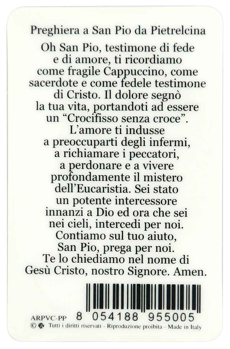 Card Padre Pio in PVC - 5,5 x 8,5 cm - italiano