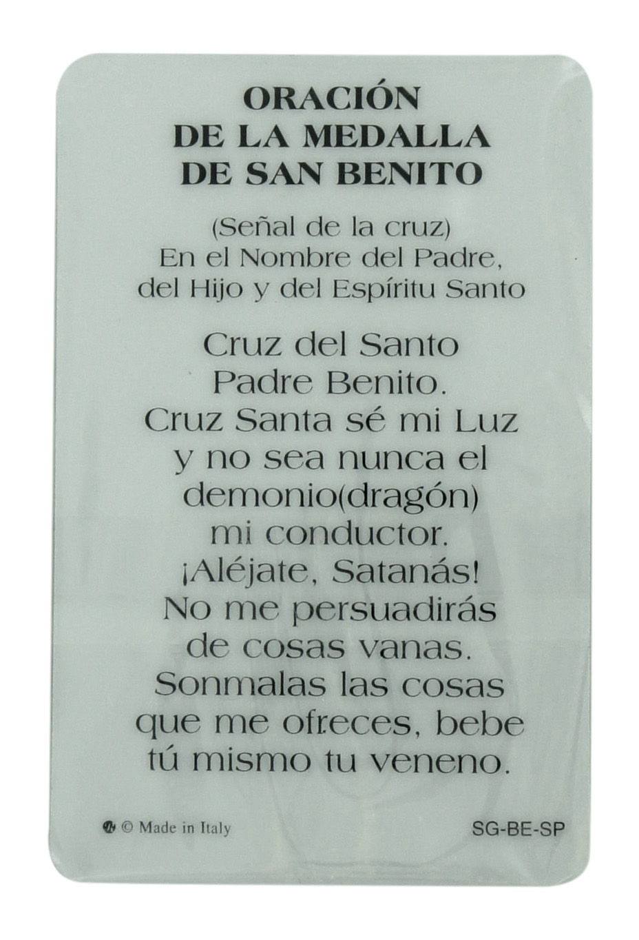 Card San Benedetto della guarigione in PVC con preghiera e medaglia - 5,5 x 8,5 cm - spagnolo