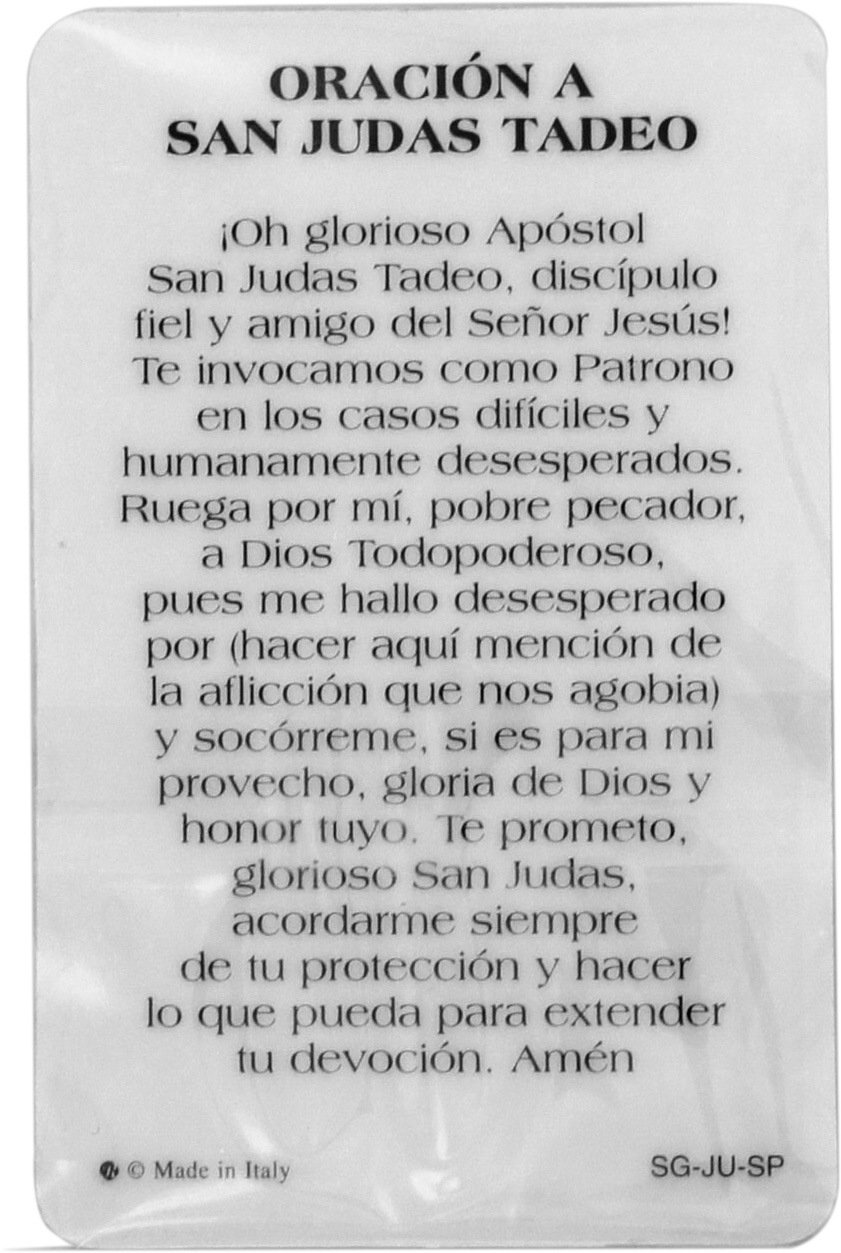 Card San Giuda Taddeo della guarigione in PVC con preghiera e medaglia - 5,5 x 8,5 cm - Spagnolo
